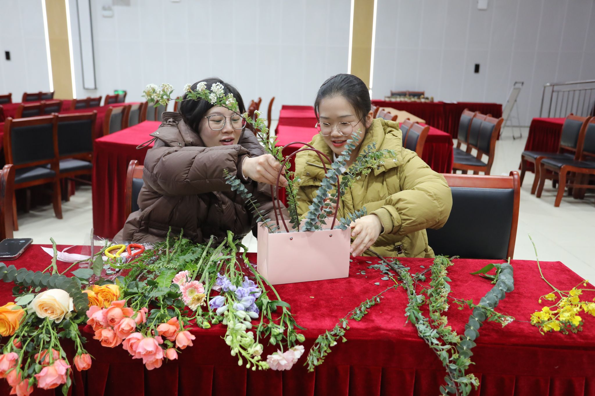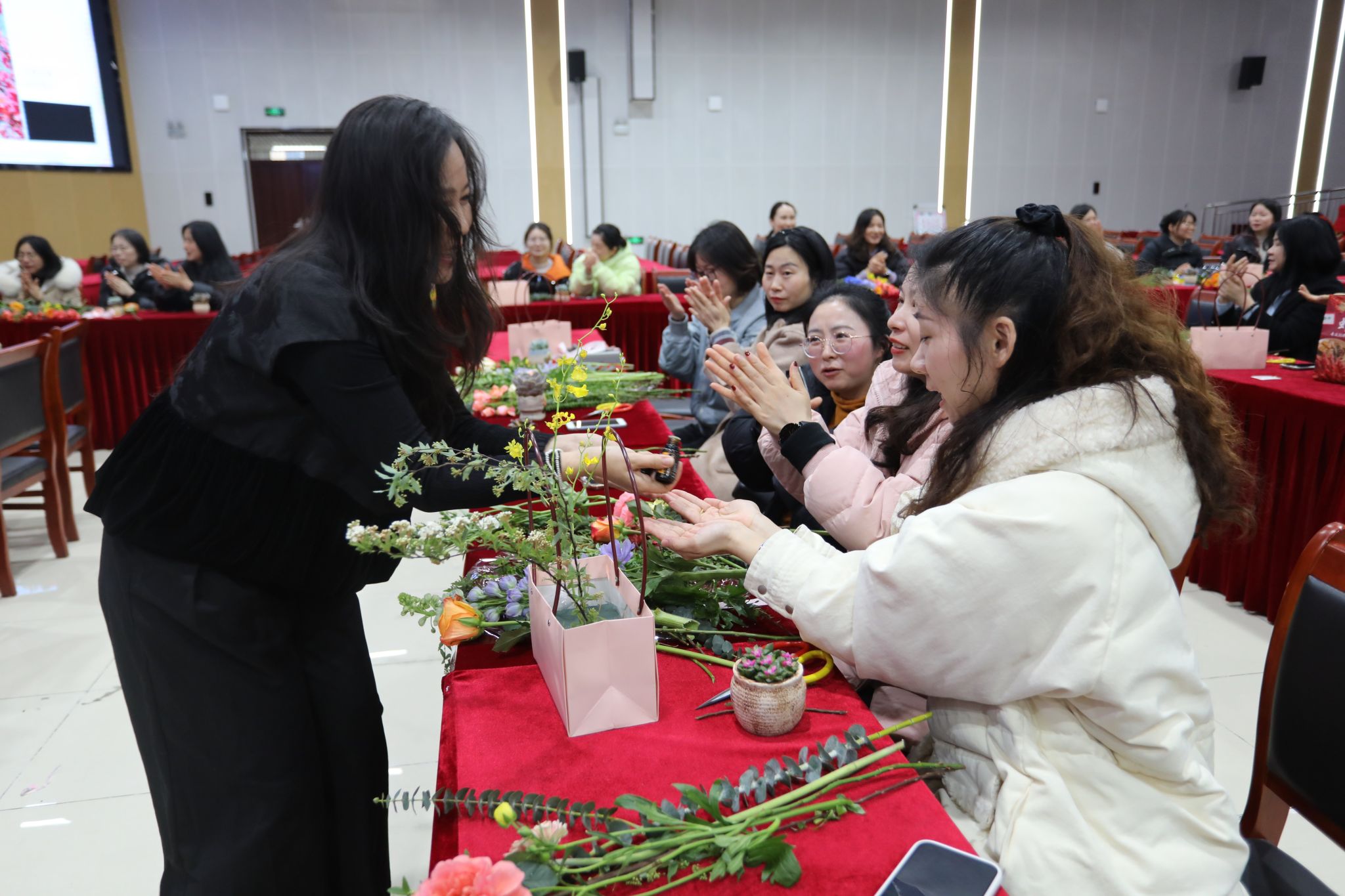 三月,春意盎然,万物复苏。在第115个“三八”国际劳动妇女节来临之际,为丰富女性职工精神文化生活,提高艺术修养,校工会女工委、校妇联3月5下午在大学生活动中心举办了一场主题为“春风如许 花样时光”的艺术插花培训活动。110多名女性职工参加了活动,在花香四溢中感受春日美好,共度佳节。