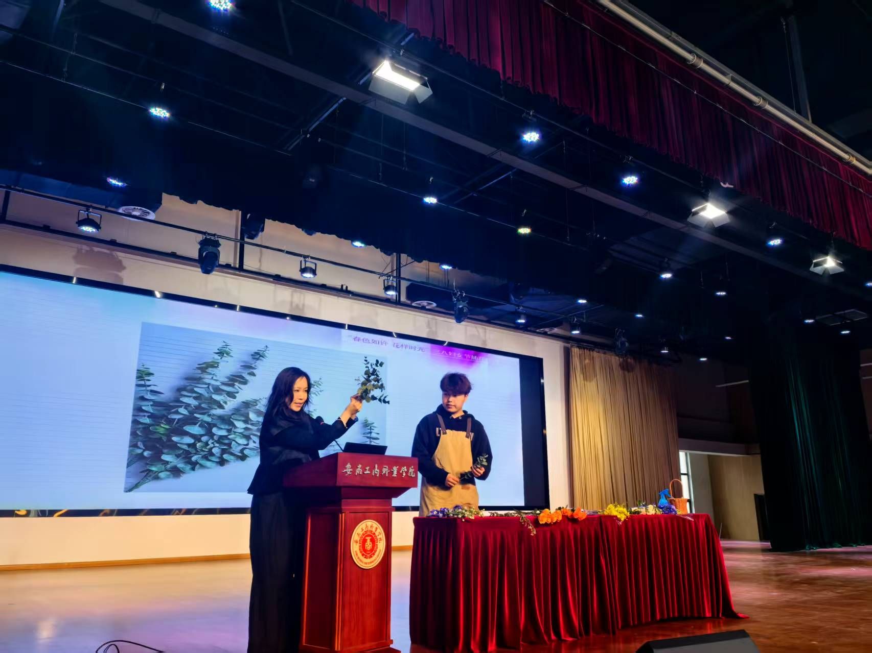 活动现场,花香四溢,春意融融。艺术设计学院的韦鸾鸾老师为大家讲解了花艺基础知识,从花材选择、色彩搭配到造型设计,深入浅出地传授了插花技巧,并在现场指导示范了插花技艺。