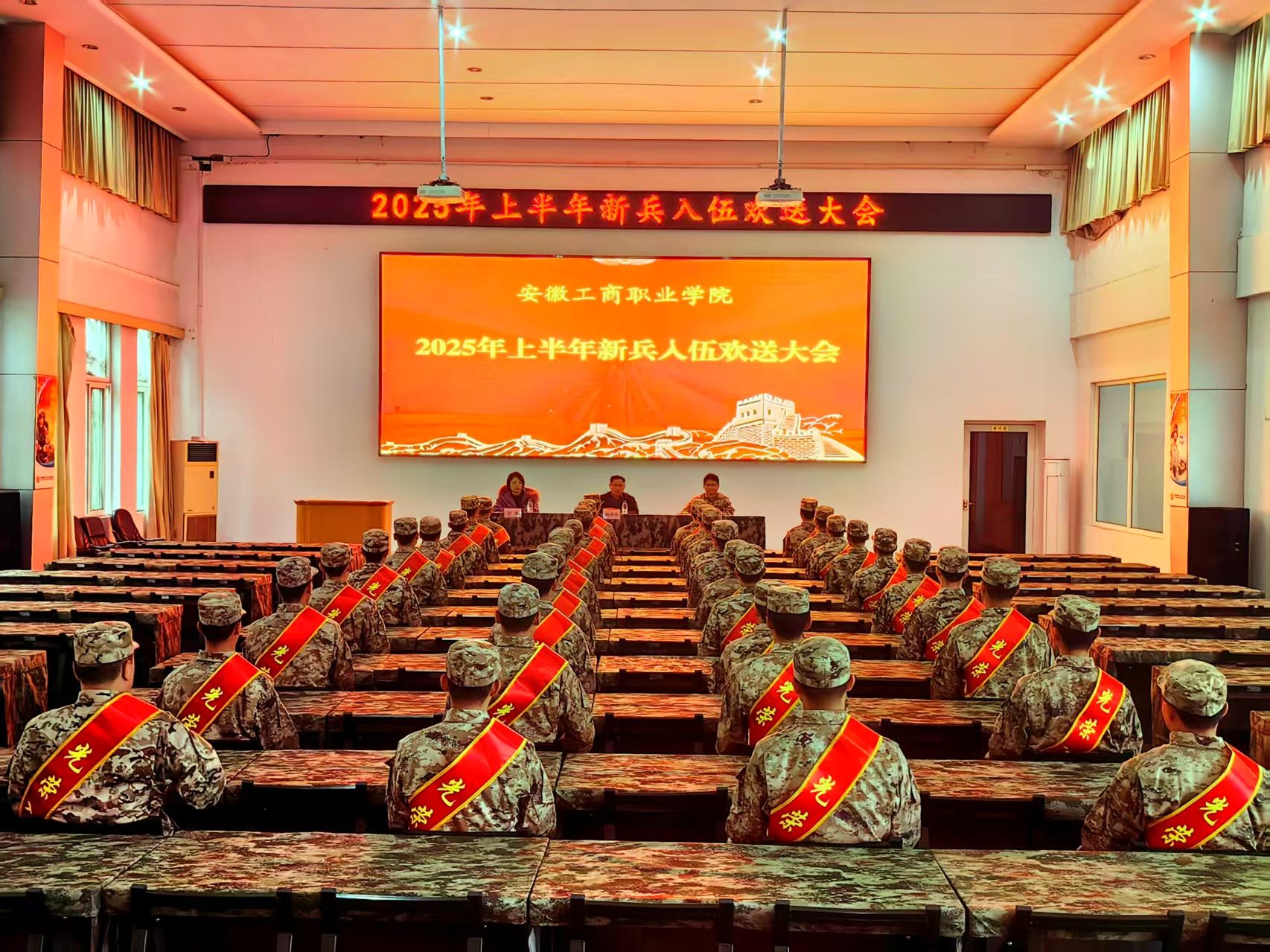 热血青春献国防,壮志豪情踏征程。2025年3月13日下午,学校2025年春季应征入伍学生欢送会在合肥市警备区教导队举行。党委委员、副院长胡捍东,庐阳区人武部文职副部长张钺,杏林街道党工委副书记、街道办事处主任张彧及征兵相关人员出席欢送会,从合肥市庐阳区应征入伍的我校45名同学参加欢送会。