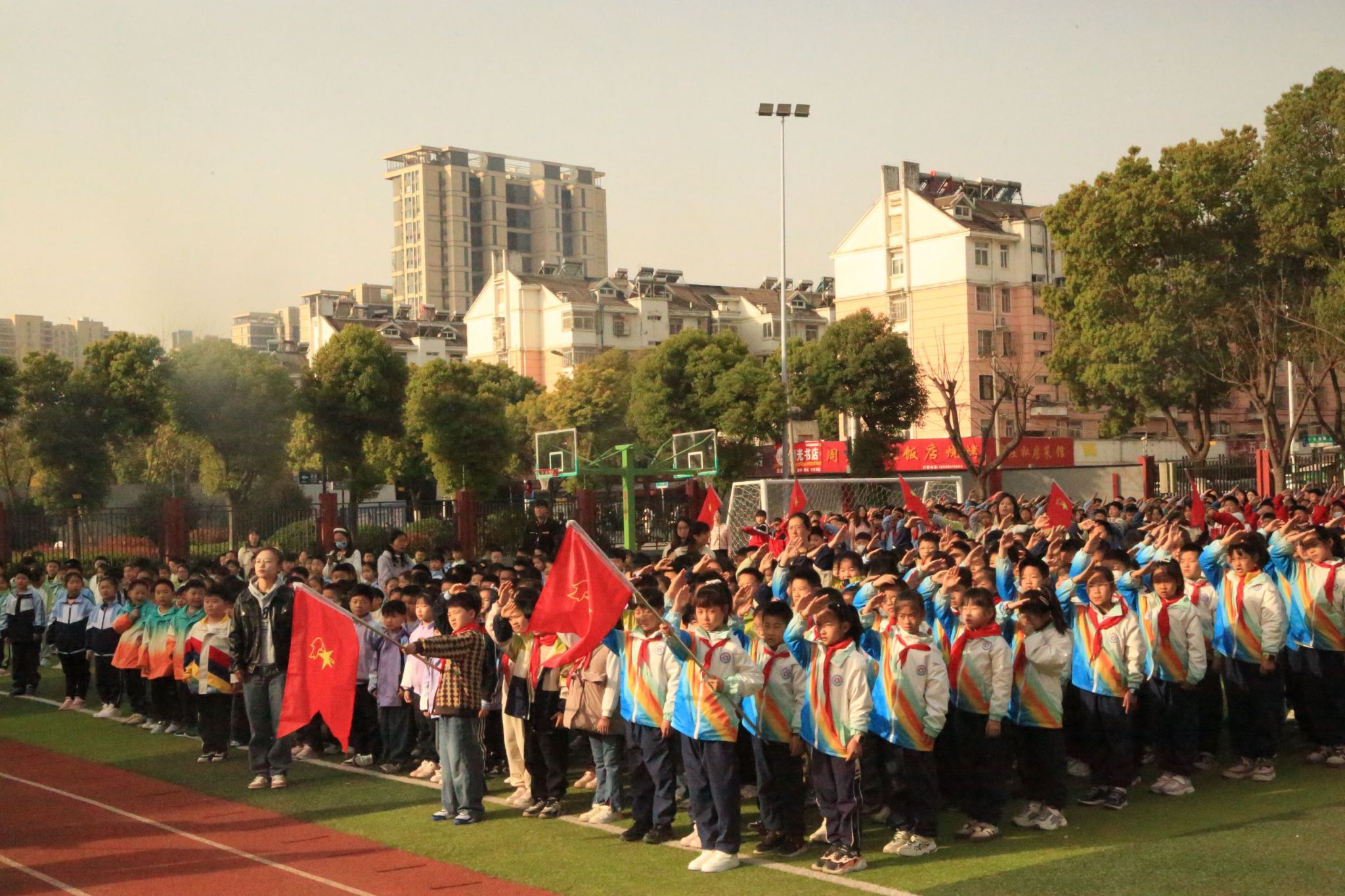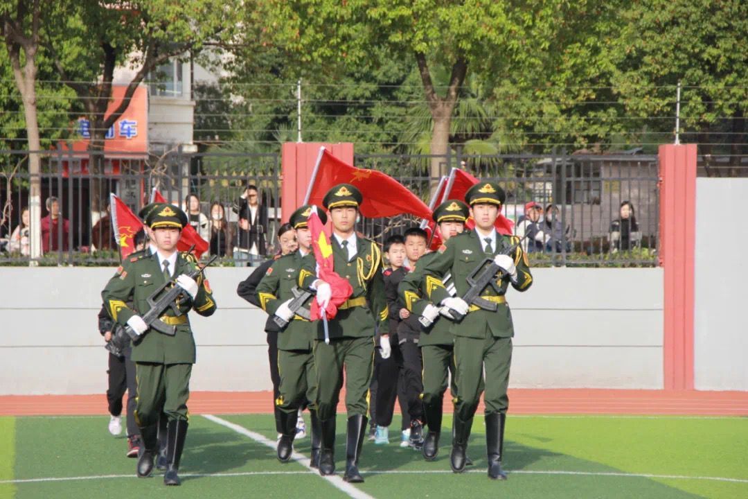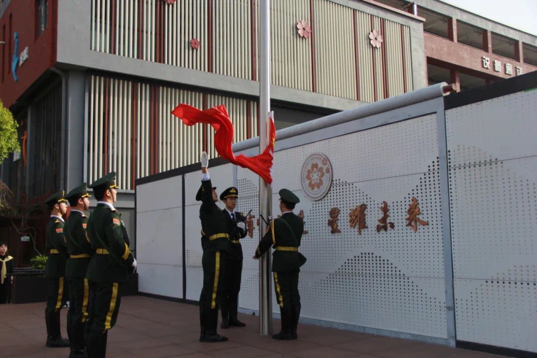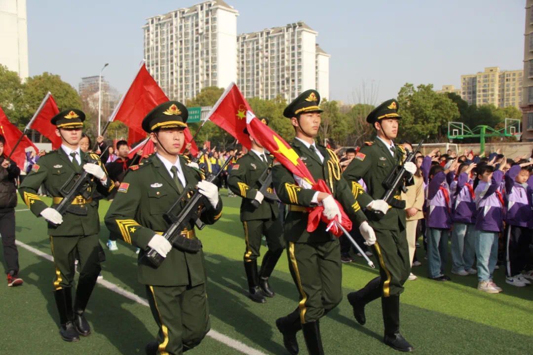 上午8时整,伴随着铿锵有力的步伐,由我校国旗护卫队组成的升旗方阵昂首步入会场。在全体师生嘹亮的国歌声中,五星红旗冉冉升起,少先队员们整齐划一的队礼与大学生们坚毅的注目礼交相辉映,雷锋精神与爱国情怀在此刻交织,凝聚成青春奋进的力量!