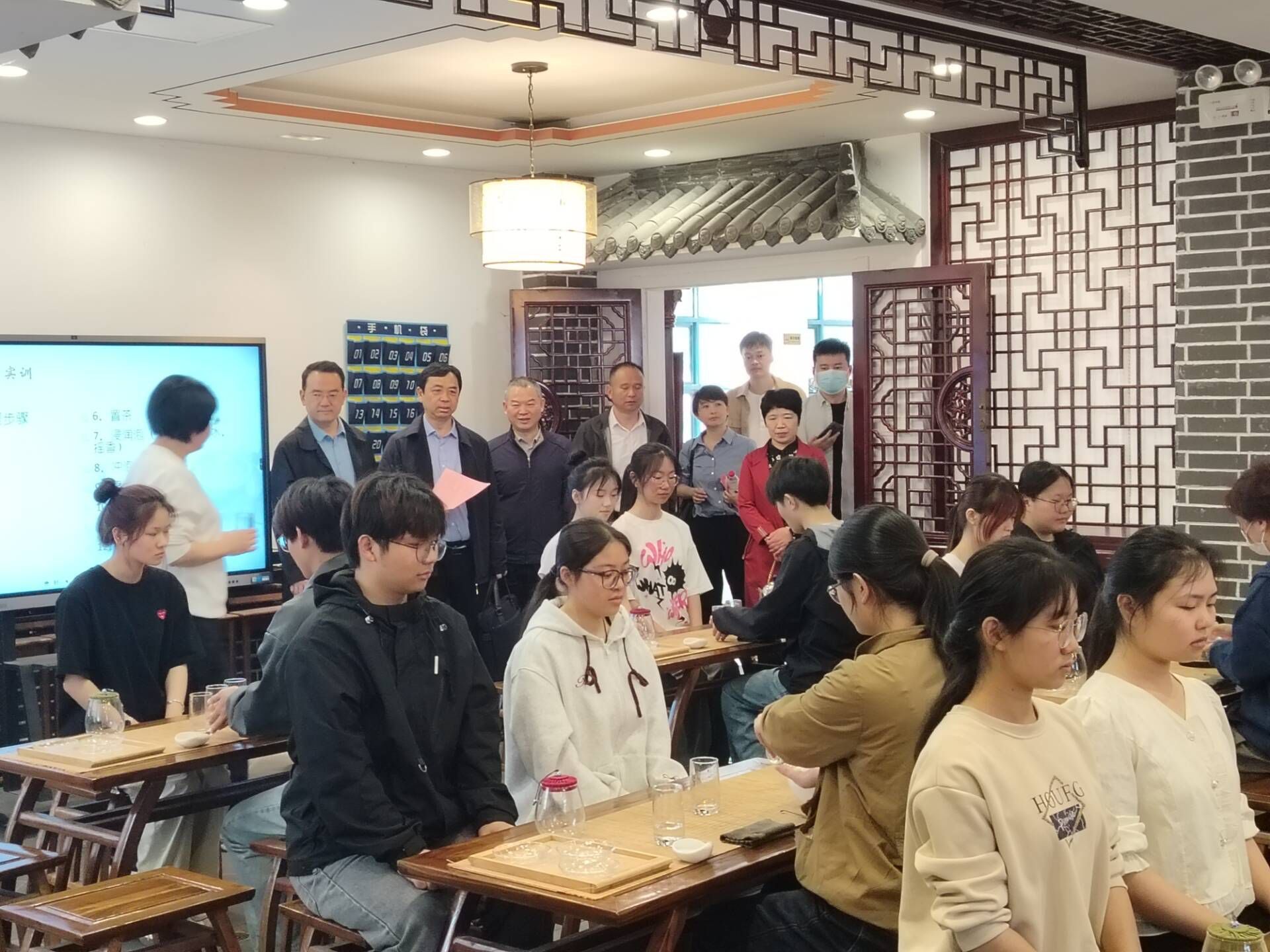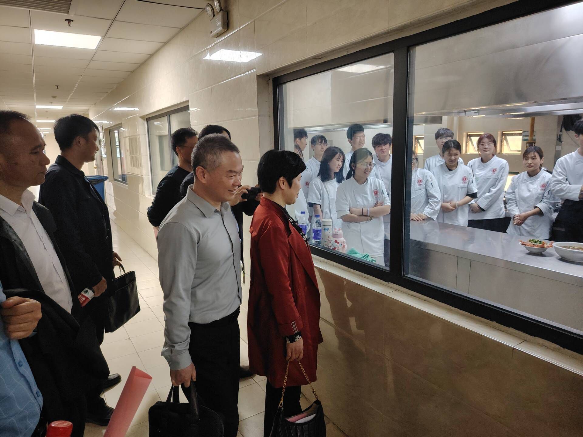 调研期间,在国际交流与继续教育学院副院长陈清清的陪同下,调研组先后走访了智能制造与汽车学院工业机器人技术实训室、新能源整车检测与维修实训室;会计学院大数据与会计实训室、会计综合实训室;旅游健康学院中餐热菜实训室、冷拼雕刻实训室、茶艺实训室;信息工程学院信息技术应用创新实训室、信息安全技术实训室;管理学院物流实训室等,以及校实习宾馆、智慧思政教学实践基地等场所。