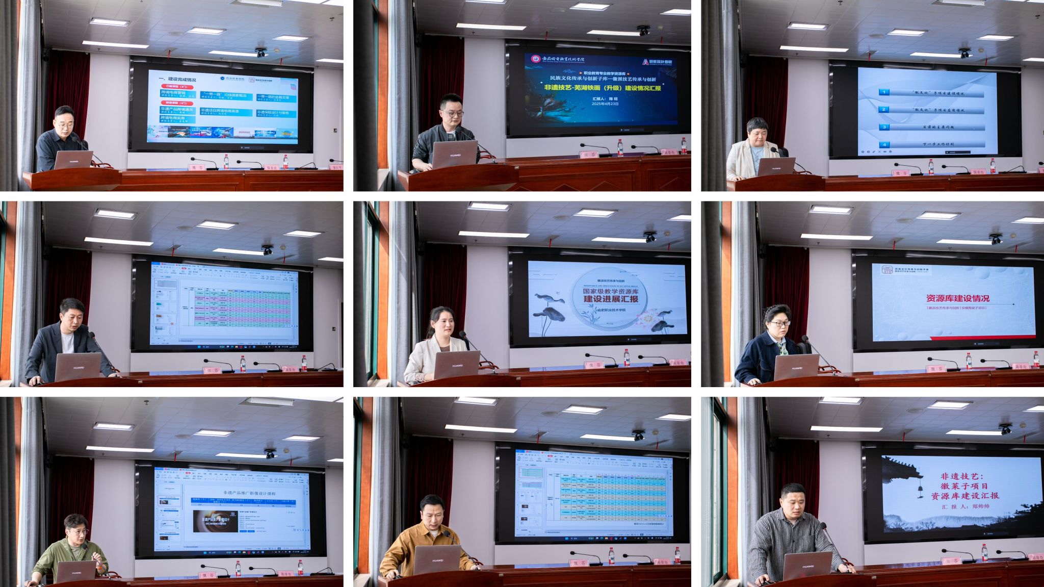 4月23日下午,徽派技艺传承与创新专业教学资源库建设培训推进会在安徽工商职业学院双凤校区顺利召开。安徽工商职业学院党委委员、副院长陈章奇,合肥职业技术学院办公室主任窦红平,安徽机电职业技术学院艺术设计学院院长陈旺等牵头单位负责人,以及9个子项目负责人、54门课程负责人出席会议。重庆电力高等专科学校伍家洁教授受邀远程参会并作专题指导。会议由艺术设计学院院长魏芬主持。