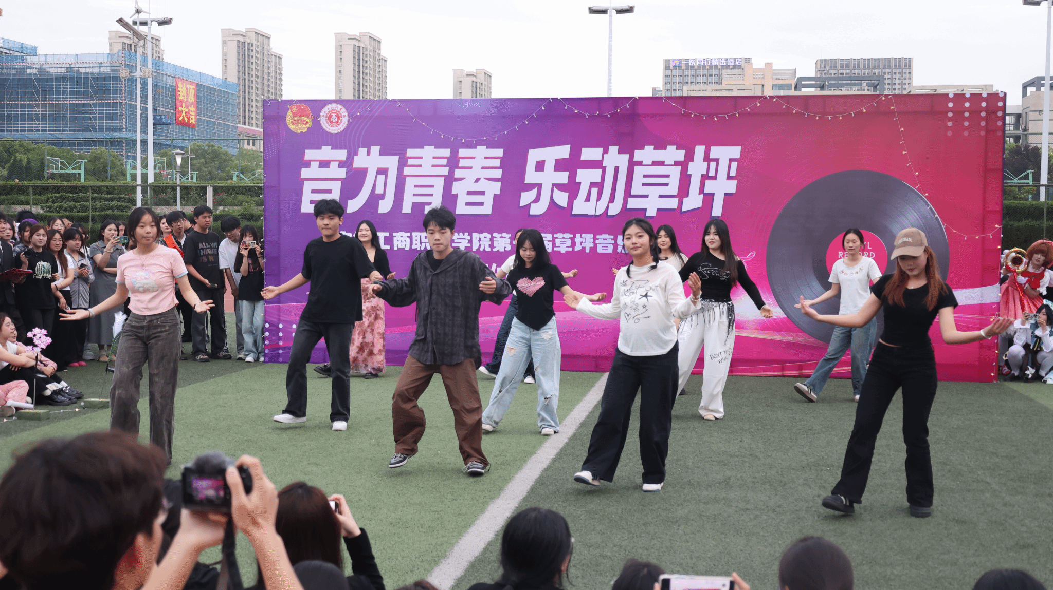 碧茵如染,清风绕襟。为落实“时代新人铸魂工程”,丰富同学们的课余生活,营造良好的校园文化氛围,4月25日晚六时,由校团委、校大学生社团管理部联合主办的草坪音乐节在田径场盛大开幕。活动以“音为青春 乐动草坪”为主题,集结20余个学生社团倾力打造,吸引千余名师生齐聚绿茵场,共同见证了一场融合音乐、舞蹈、武术与创意的视听盛宴。