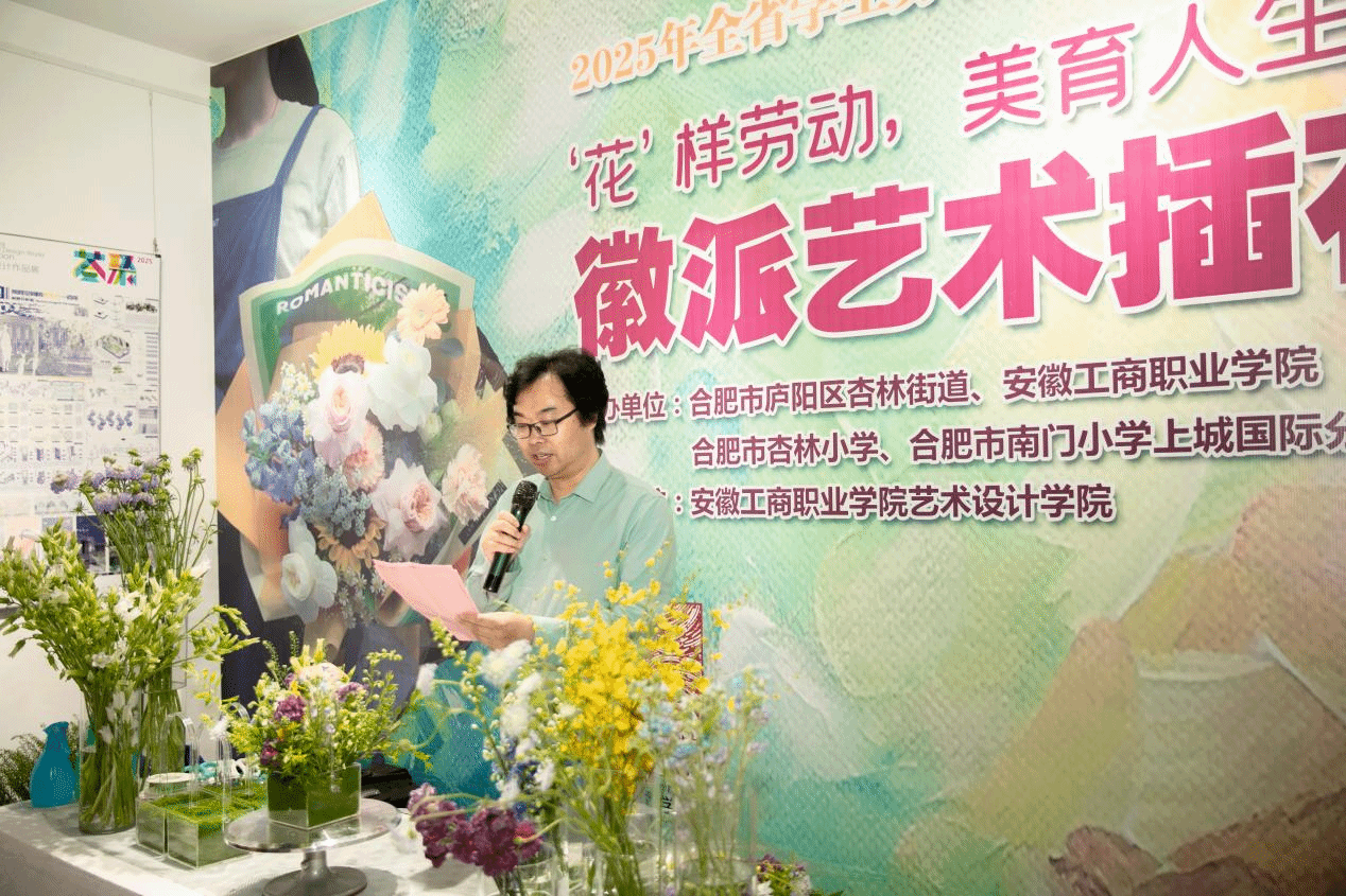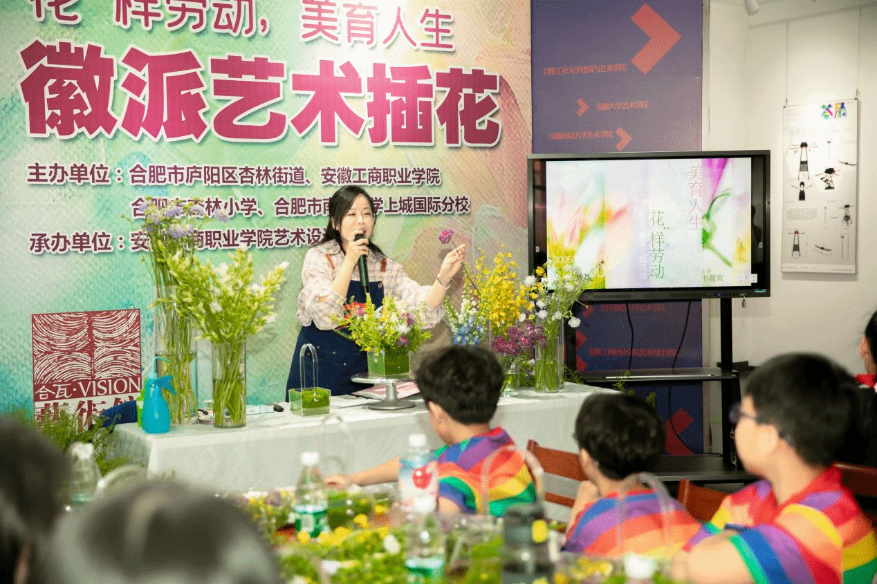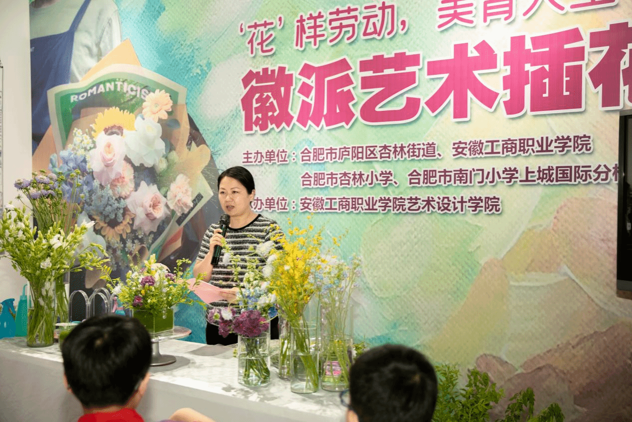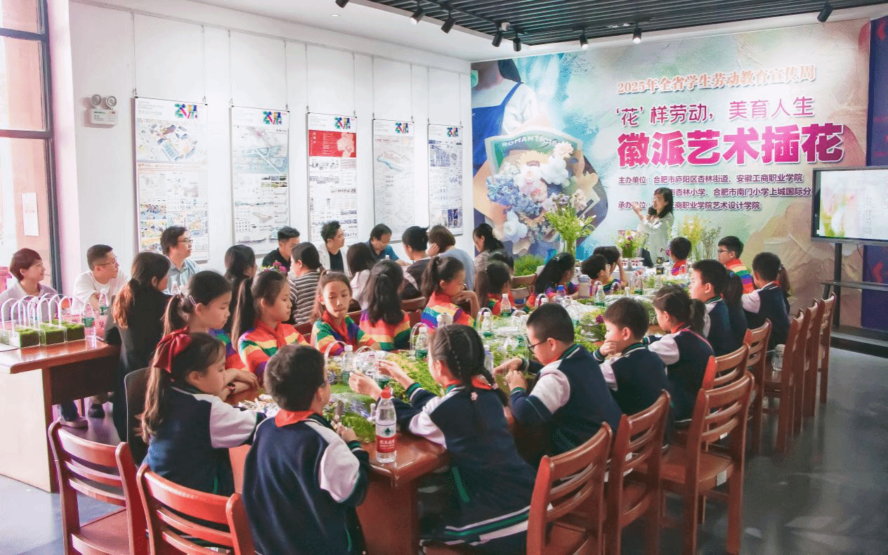 5月9日下午,由合肥市庐阳区杏林街道、安徽工商职业学院联合合肥市杏林小学、南门小学上城国际分校共同主办的第5个全省学生劳动教育宣传周活动在安徽工商职业学院庐阳校区合瓦VISION艺术馆举行。活动通过徽派艺术插花劳动实践与艺术教育的深度融合,为师生带来一堂生动的思政课,展现了劳动育人的创新探索。