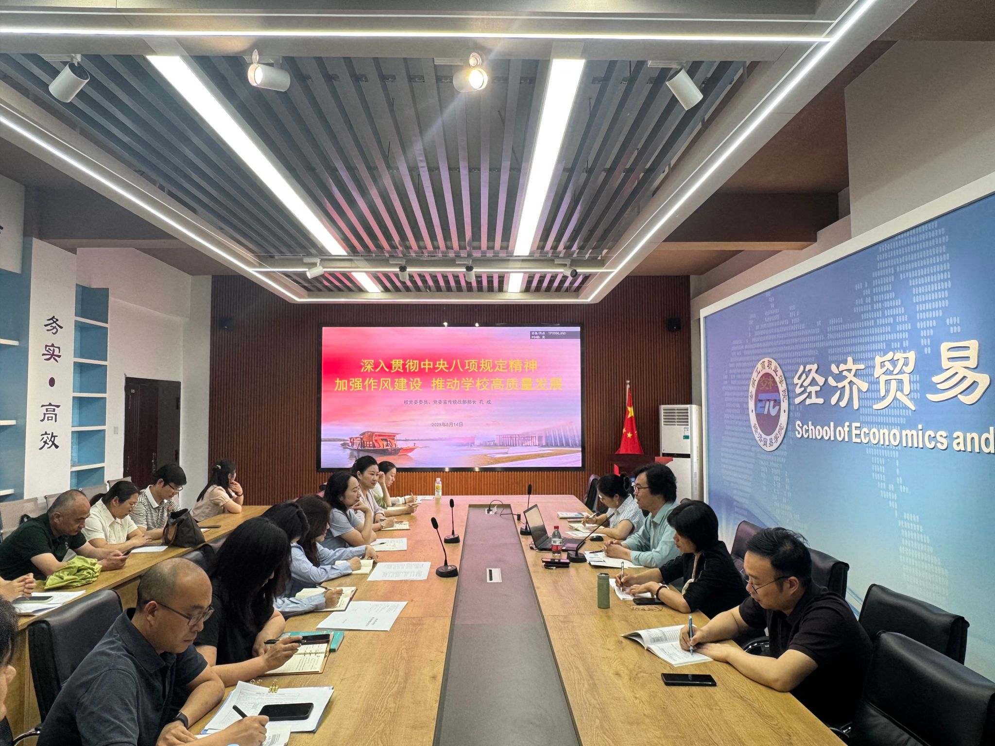 为进一步深入贯彻中央八项规定精神学习教育,切实提高党员干部纪律意识,强化作风建设,推动学院高质量发展,5月14日中午,党委委员、宣传统战部部长孔成深入经济贸易学院讲授深入贯彻中央八项规定精神学习教育专题党课。经济贸易学院党政领导班子成员及全体教师、辅导员参加学习。