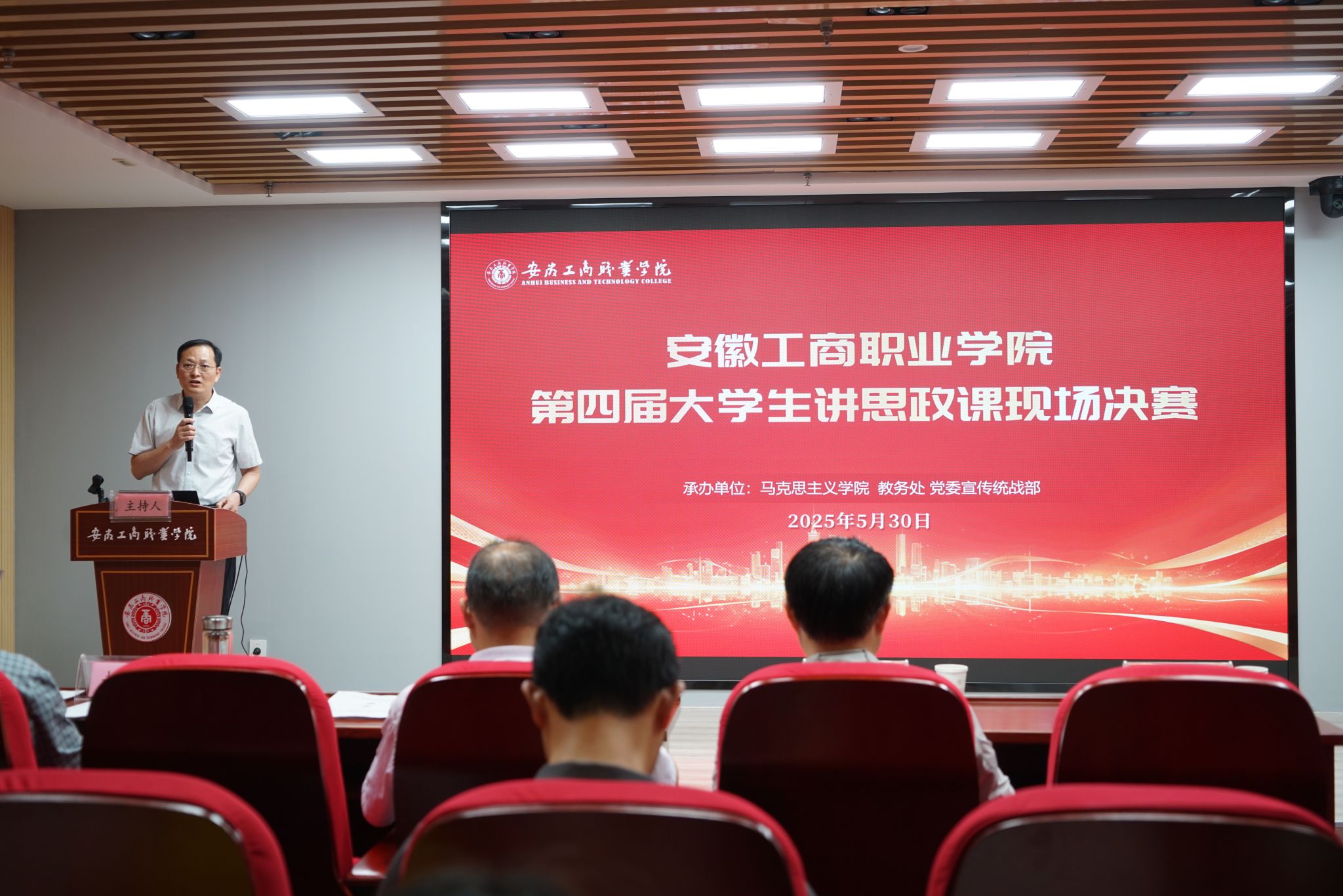 为深入贯彻落实习近平总书记关于教育的重要论述和对学校思政课建设作出的重要指示精神,深化思政课改革创新,推进“大思政课”建设,不断提高思政课的针对性和吸引力。5月30日下午,安徽工商职业学院第四届大学生讲思政课决赛在红色报告厅成功举办。校党委委员、副院长陈章奇出席活动。比赛邀请了合肥市教育局思政处处长韦学华、安徽大学马院党委书记潘金刚、安徽中医药大学马院教授杨立红、安徽水利水电职业技术学院马院院长赵向军、安徽工业经济职业技术学院马院院长刘仁三担任评委。全体专职思政课教师现场观摩比赛,马克思主义学院副院长蒋强军主持比赛。