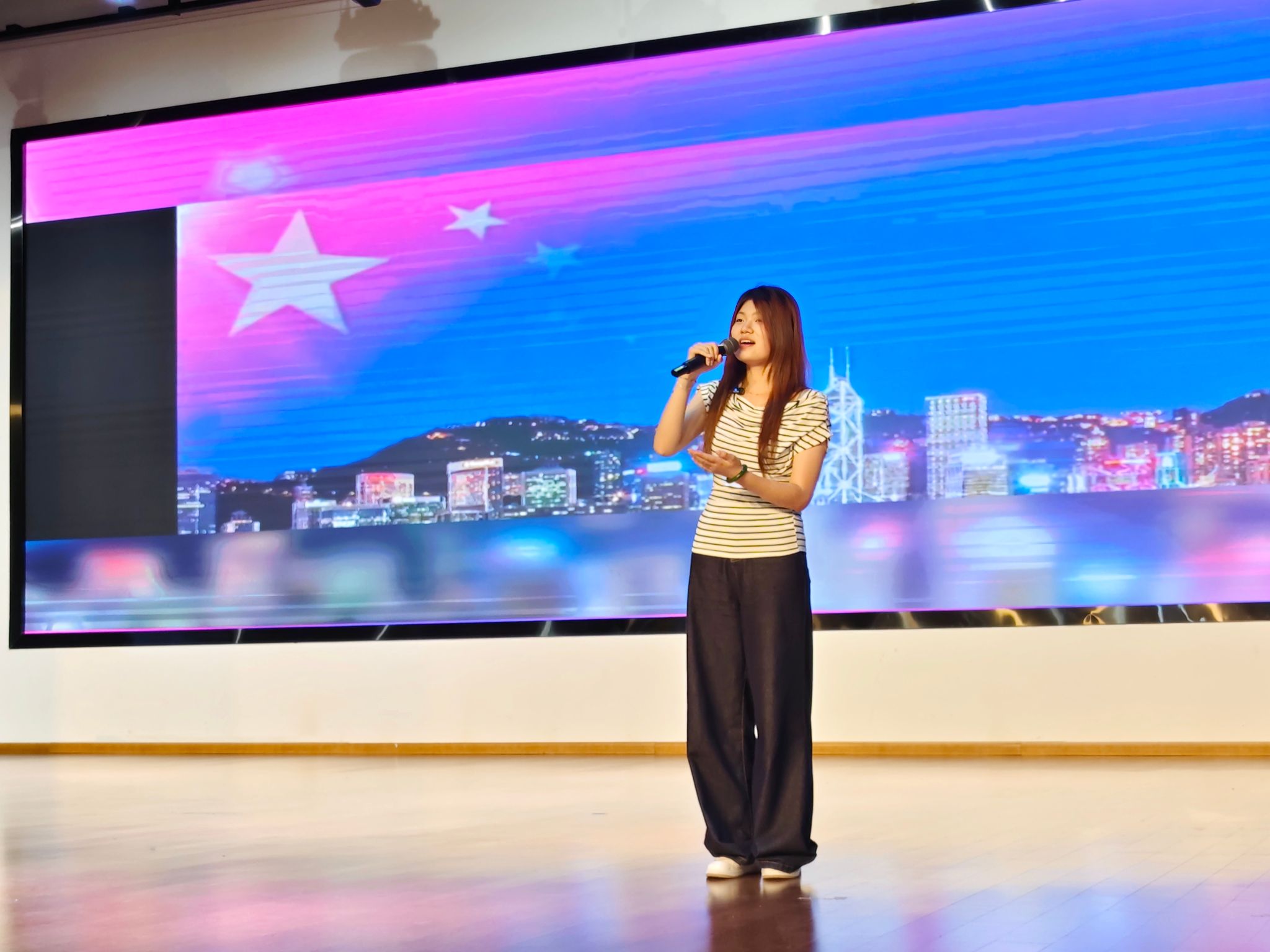 比赛现场,灯光璀璨,气氛热烈。经初赛、复赛层层选拔脱颖而出的十五位选手依次登台,用动人的歌声诠释青春与梦想,唱响对盛世的礼赞。舞台上,选手们各展所长,曲风多元。既有激情澎湃的摇滚歌曲,点燃全场热情;也有婉转悠扬的民谣,诉说细腻情感;更有深情激昂的爱国金曲,传递青年奋进力量。选手雷薇带来的一曲荡气回肠的京剧《梨花颂》震撼全场,演唱者悠长的行腔与收放自如的气息控制,将古典诗词的韵味与京剧声腔的婉转完美融合,仿佛带观众穿越千年,见证那段缠绵悱恻的爱情故事。梅宇婷带来的《东方之珠》,旋律宛如一条蜿蜒的河流,温柔且绵长,激昂的节奏与铿锵有力的音调,将对香港的热爱与眷恋之情推向高潮,恰似海浪拍打着海岸,直击听众的心灵深处。舞台下,观众们热情高涨,为喜爱的选手呐喊助威,欢呼声、掌声此起彼伏,将比赛气氛推向一个又一个高潮。