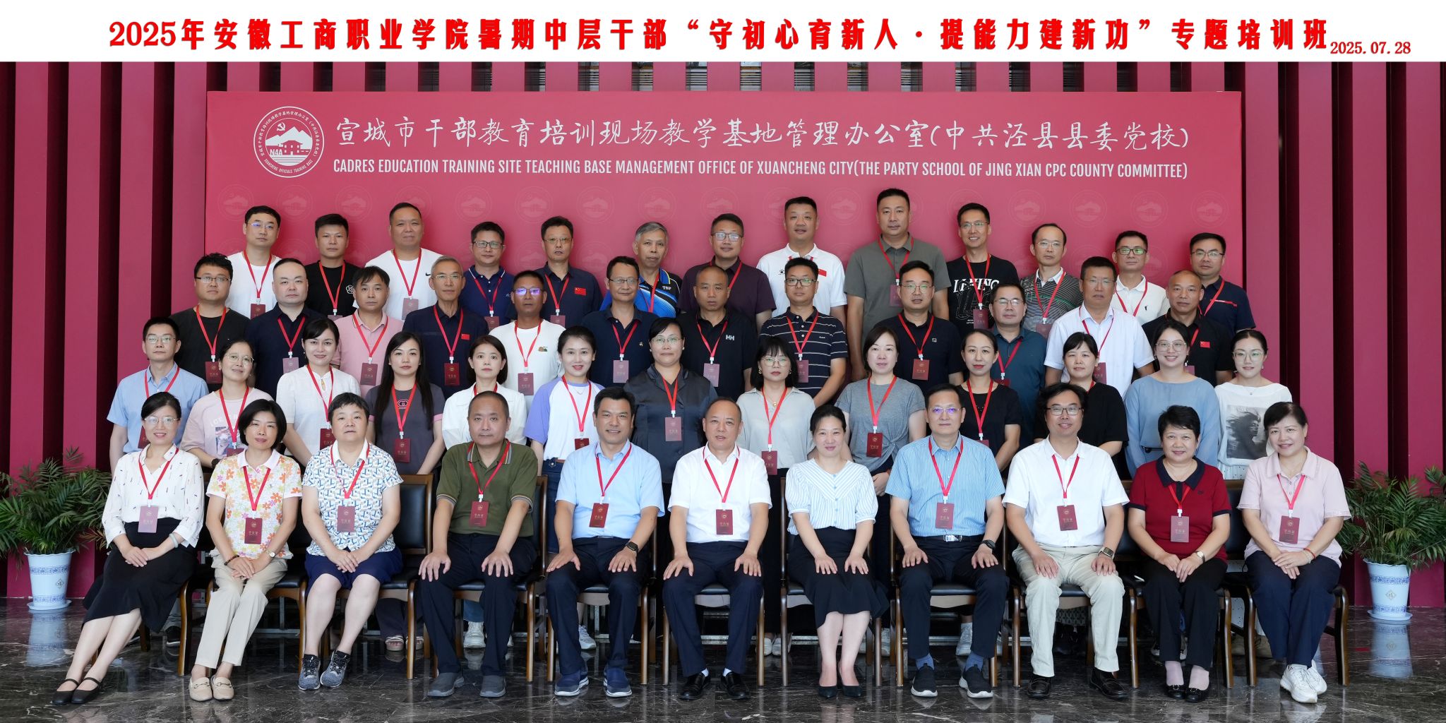 为提升中层干部的综合素质和管理能力,7月28日至8月1日,我校在中共泾县委党校成功举办了 2025 年暑期中层干部“守初心育新人,提能力建新功”专题培训班。全体校领导、中层干部参加了培训。