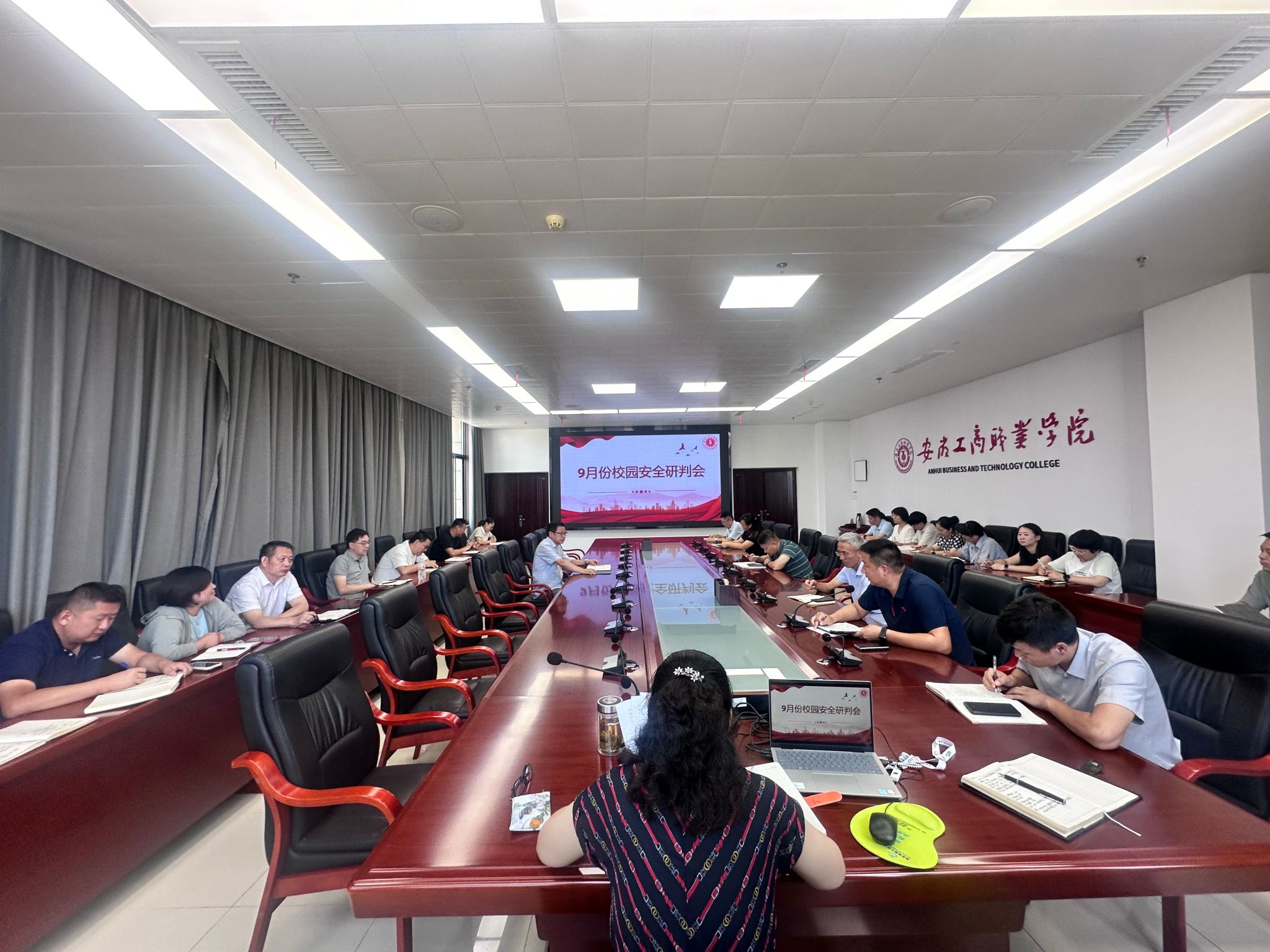 为切实保障2025年秋季学期开学前后校园安全稳定,9月4日上午,学校在综合楼第三会议室召开9月份校园安全工作研判会。各二级学院、有关职能部门负责人参加会议,共同为新学期校园安全工作谋篇布局,会议由分管校领导胡捍东主持。