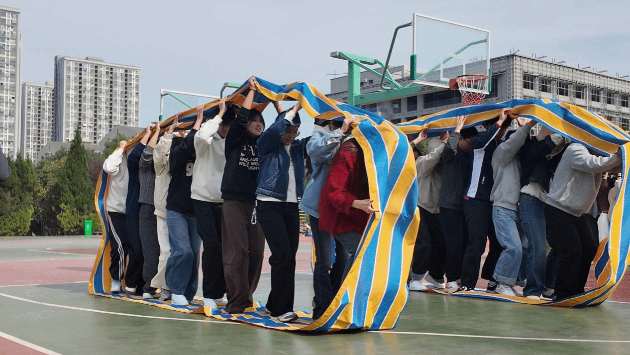 他们的脸上带着发力的坚毅,却也传递出队友间的信任与支持,没有激烈对抗,却有着最真挚的伙伴情谊,这是运动会“团结”主题最生动的注脚。