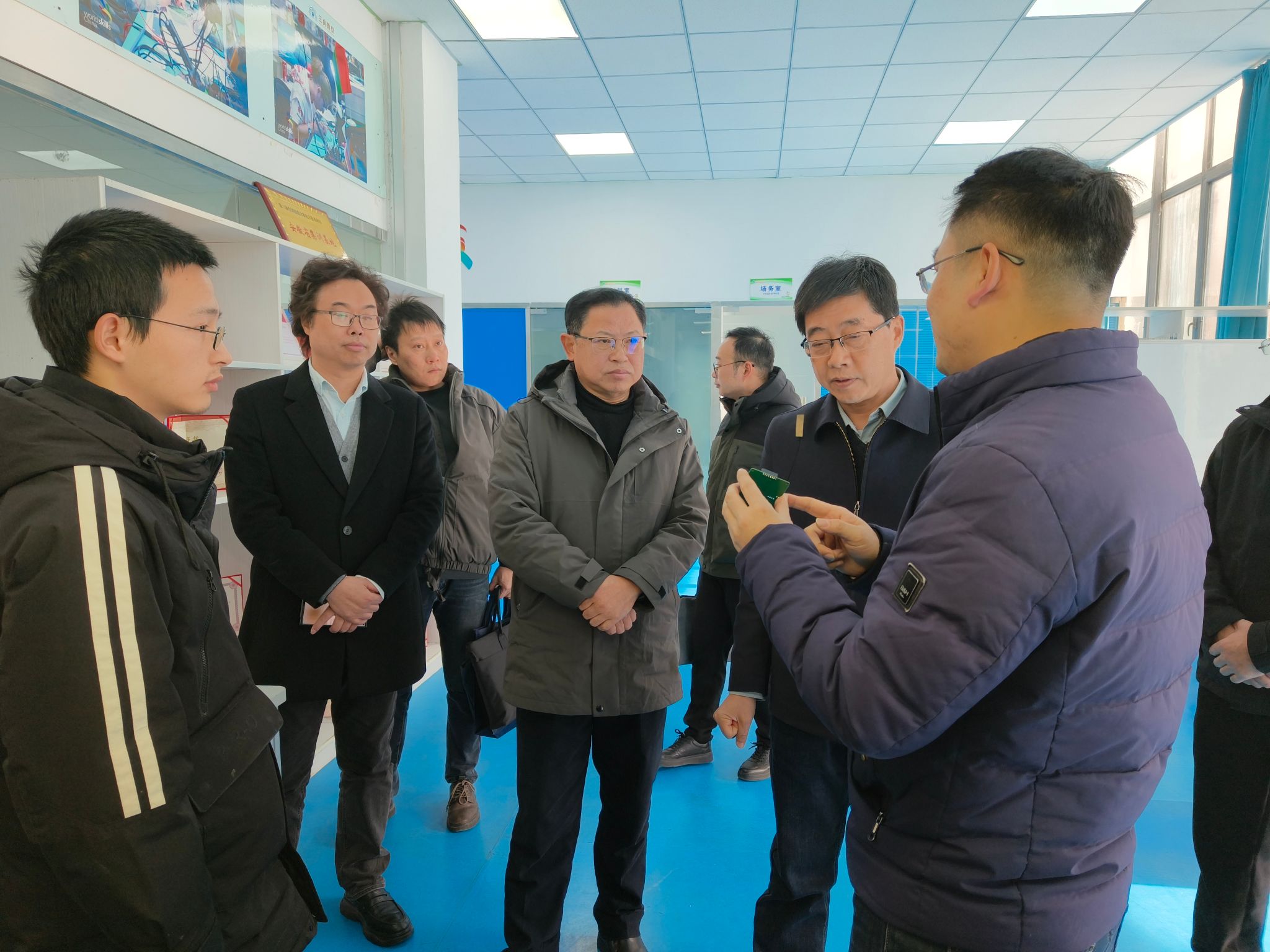 座谈会后,胡捍东代表学校与挂职干部边昊同志亲切交谈并致以慰问,同时对后续挂职工作提出了期望。随后,在纪昌国的陪同下,我校一行参观了安徽金寨职业学校的实训基地,进一步直观了解了该校的实践教学条件与办学实力。