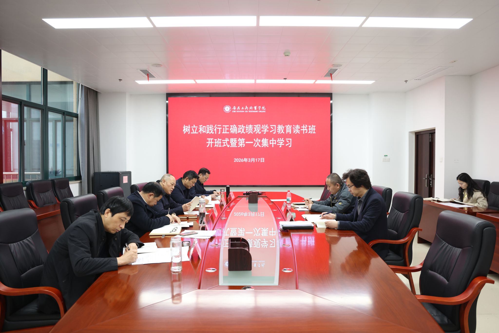 3月17日上午,学校党委举办树立和践行正确政绩观学习教育读书班开班式暨第一次集中学习。全体党委班子成员参加学习。党委书记齐建平主持并讲话。