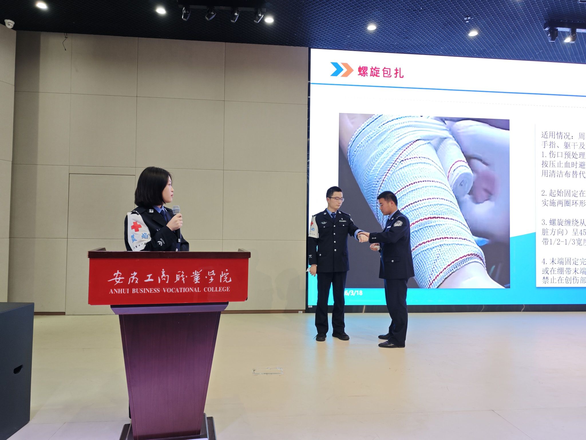 为普及应急救护知识,提升广大青年学子自救互救能力,筑牢校园安全防线,3月18日,我校联合安徽警官职业学院“蓝焰”急救志愿服务队开展“急救知识进校园,守护生命共成长”应急救护技能专题宣传培训活动。活动吸引了数百名学生积极参与,现场学习氛围浓厚,为校园安全建设注入新动能。