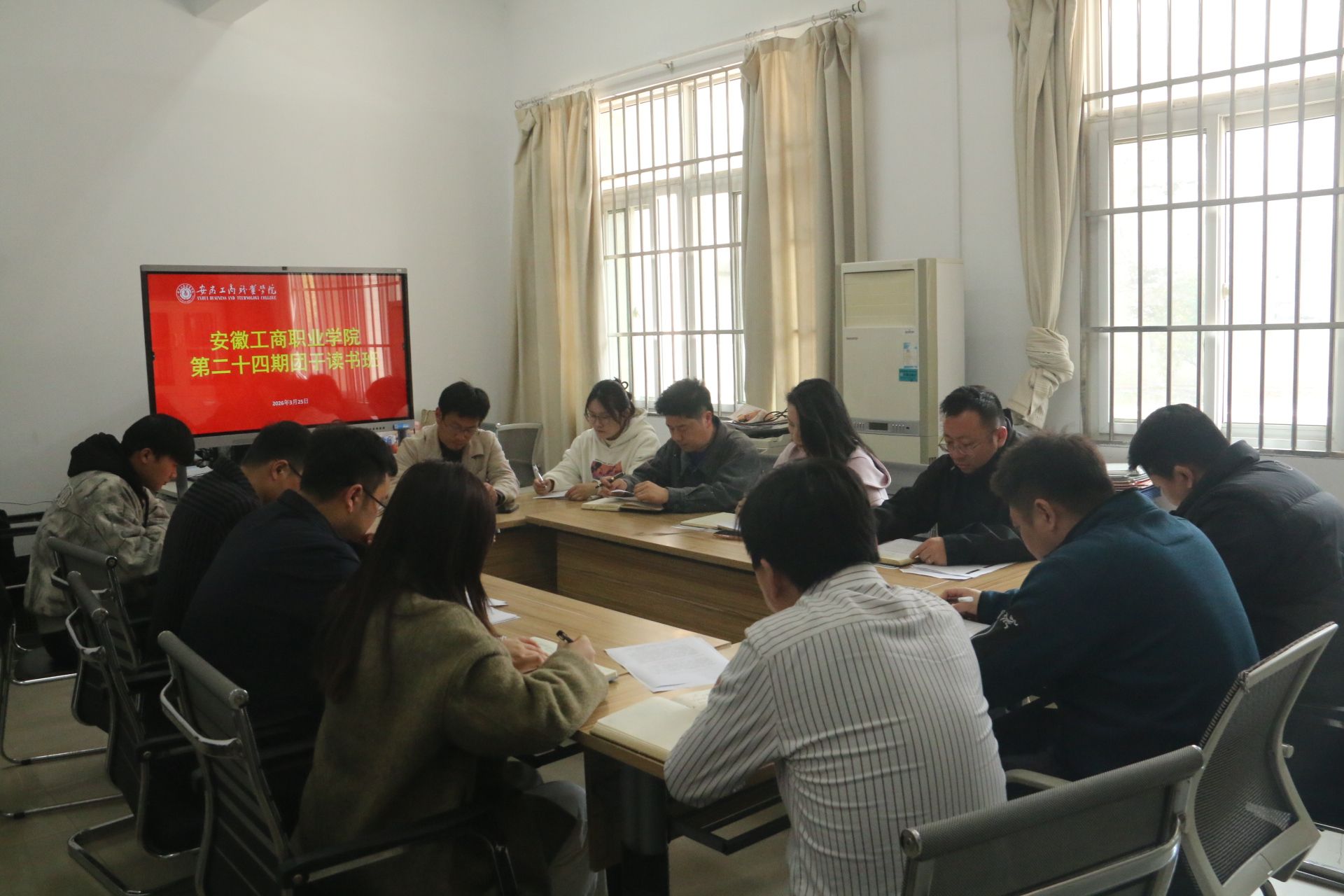 3月25日中午,学校第二十四期团干读书班在明德楼团委会议室举办。会议专题学习《习近平关于树立和践行正确政绩观论述摘编》,旨在进一步加强团干部理论武装,提升履职能力。校团委副书记童乐、团委委员及各二级学院团总支书记参加学习。