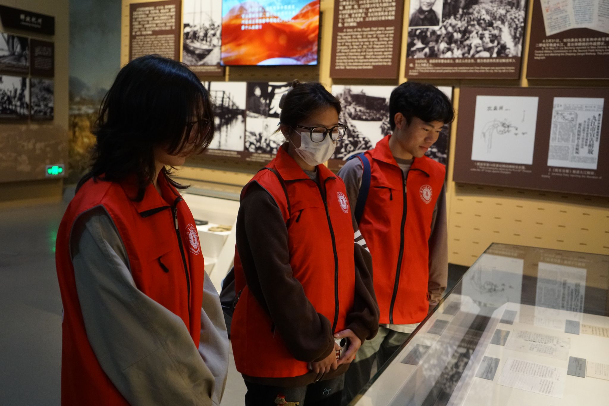 随后,师生步入展厅,通过丰富文物、场景复原与影像资料,全景式学习渡江战役光辉历史。在讲解员带领下,同学们聆听英雄故事,在木船、作战地图、烈士遗物前驻足凝思,深刻感悟革命先辈不畏牺牲、勇往直前的精神气概。