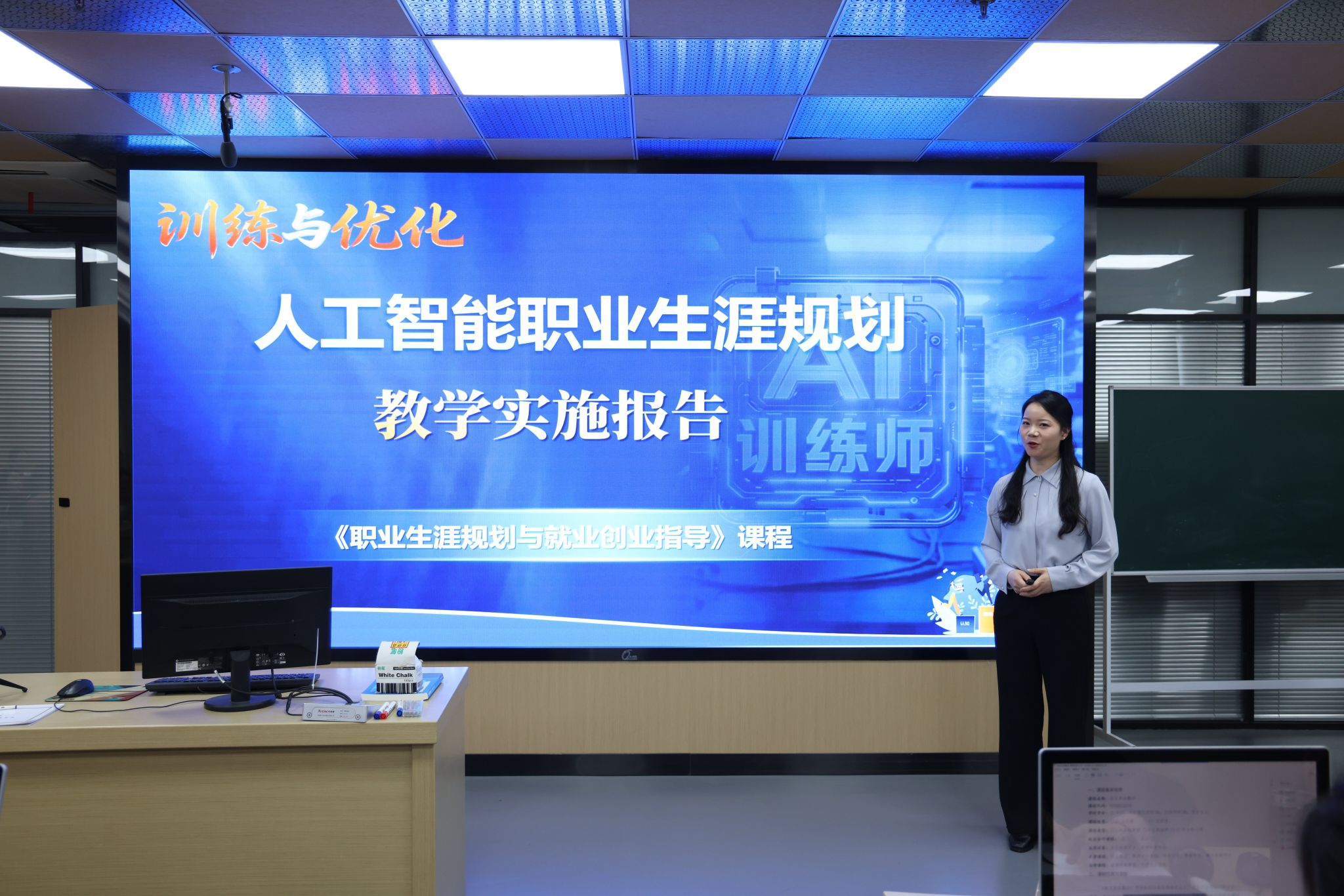 比赛现场,各参赛队按照抽签顺序上台,在规定的时间内分别从教学实施报告介绍、无生教学展示和答辩等环节展开比拼。各参赛教师准备充分、教学思路清晰、过程设计合理、语言表达精炼,AI人工智能深度运用,充分展示了课程改革成果,集中展示了学校教师扎实的教学技能和教学风采。