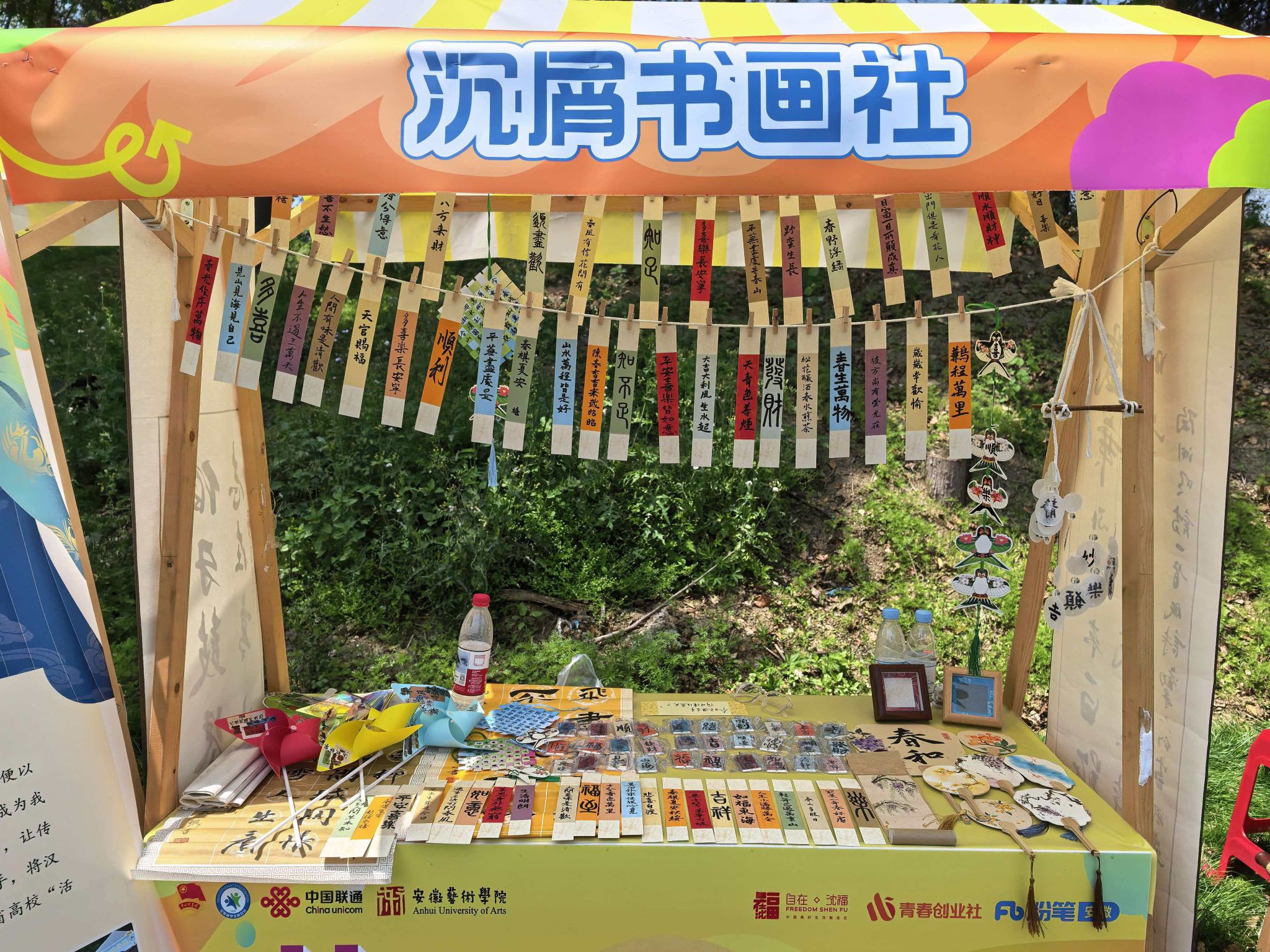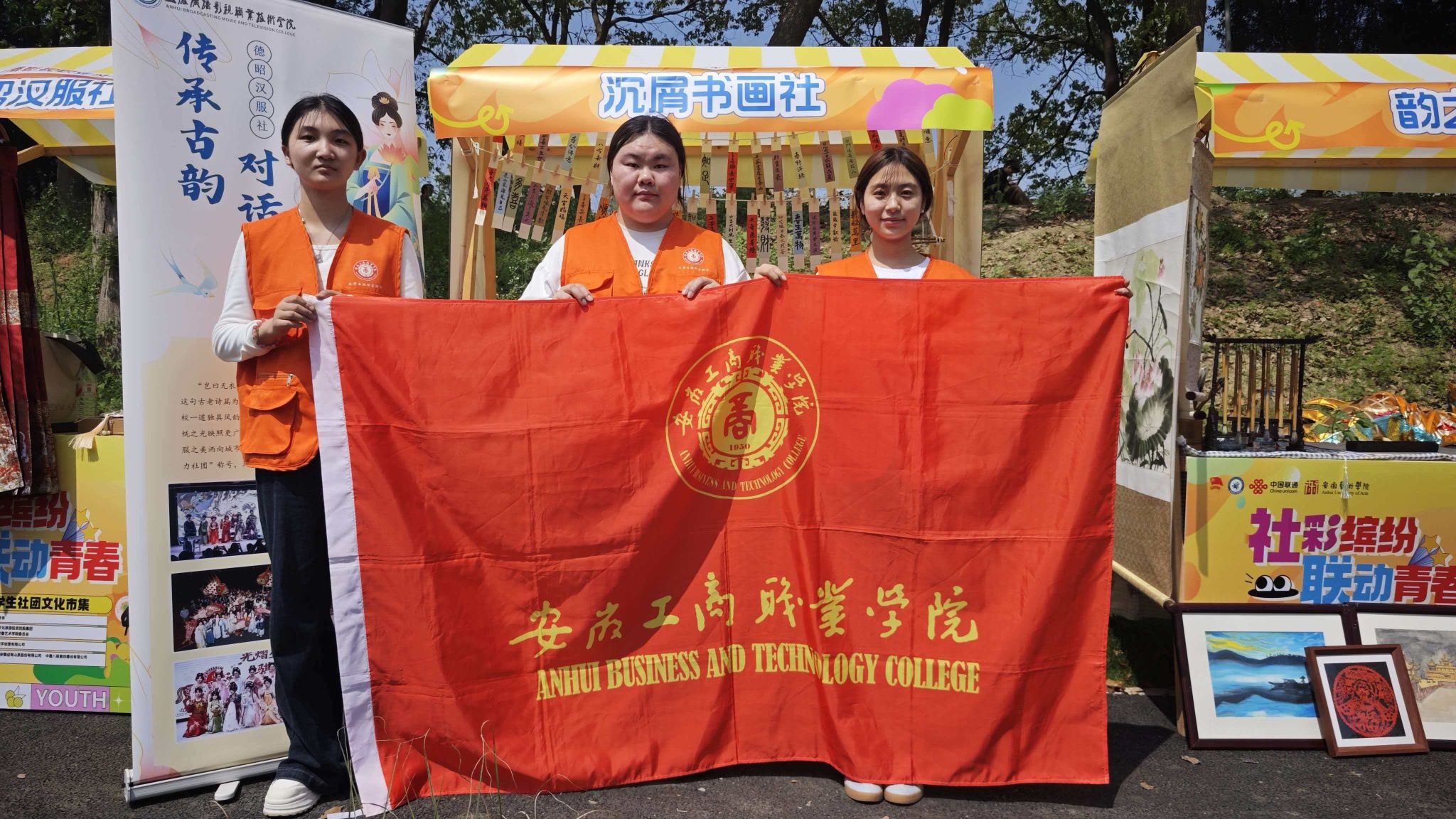 亮相省级社团文化集市:校沉屑书画社展演彰显美育成果。4月19日,我校沉屑书画社应邀参加了由共青团安徽省委、安徽省学生联合会共同主办的“‘社’彩缤纷,‘联’动青春”安徽省大学生社团文化集市活动。活动当日,沉屑书画社在集市中设立的专属展区墨香馥郁、气韵生动,凭借扎实的专业素养与别具匠心的文化互动,迅速成为现场最具人气的文化展区之一。社团骨干成员不仅向省内兄弟院校师生详尽阐释了参展作品的创作构思与文化内涵,还现场开展了书法创作、定制书签与折扇等高品质的互动体验环节,构筑了一个沉浸式的文化交流矩阵。