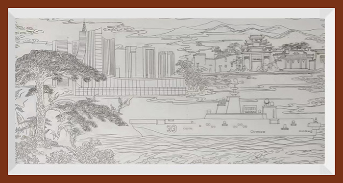 汪德洪徽州木雕《安徽舰》创作线稿图