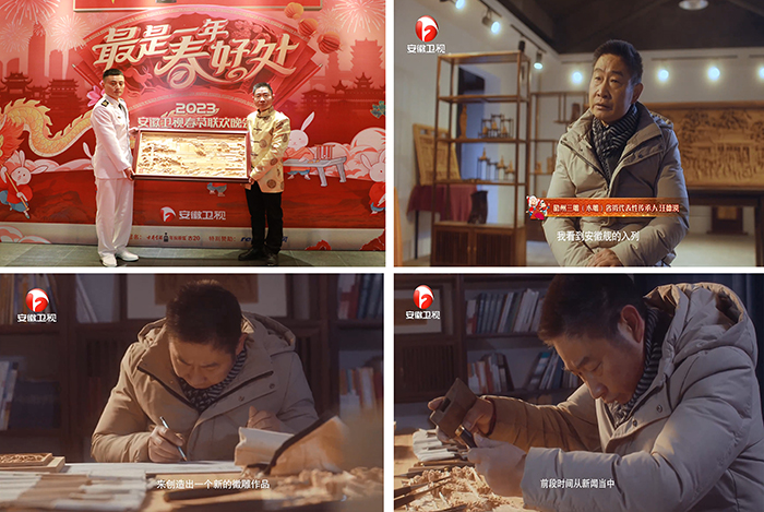 1月20日除夕前夜,我校国家级徽派三雕技艺大师工作室木雕首席大师汪德洪应邀荣登2023年安徽卫视春节联欢晚会舞台,展示新创作徽州木雕作品《安徽舰》并赠送给安徽舰全体官兵,代表全省人民送去家乡的新春祝福。
