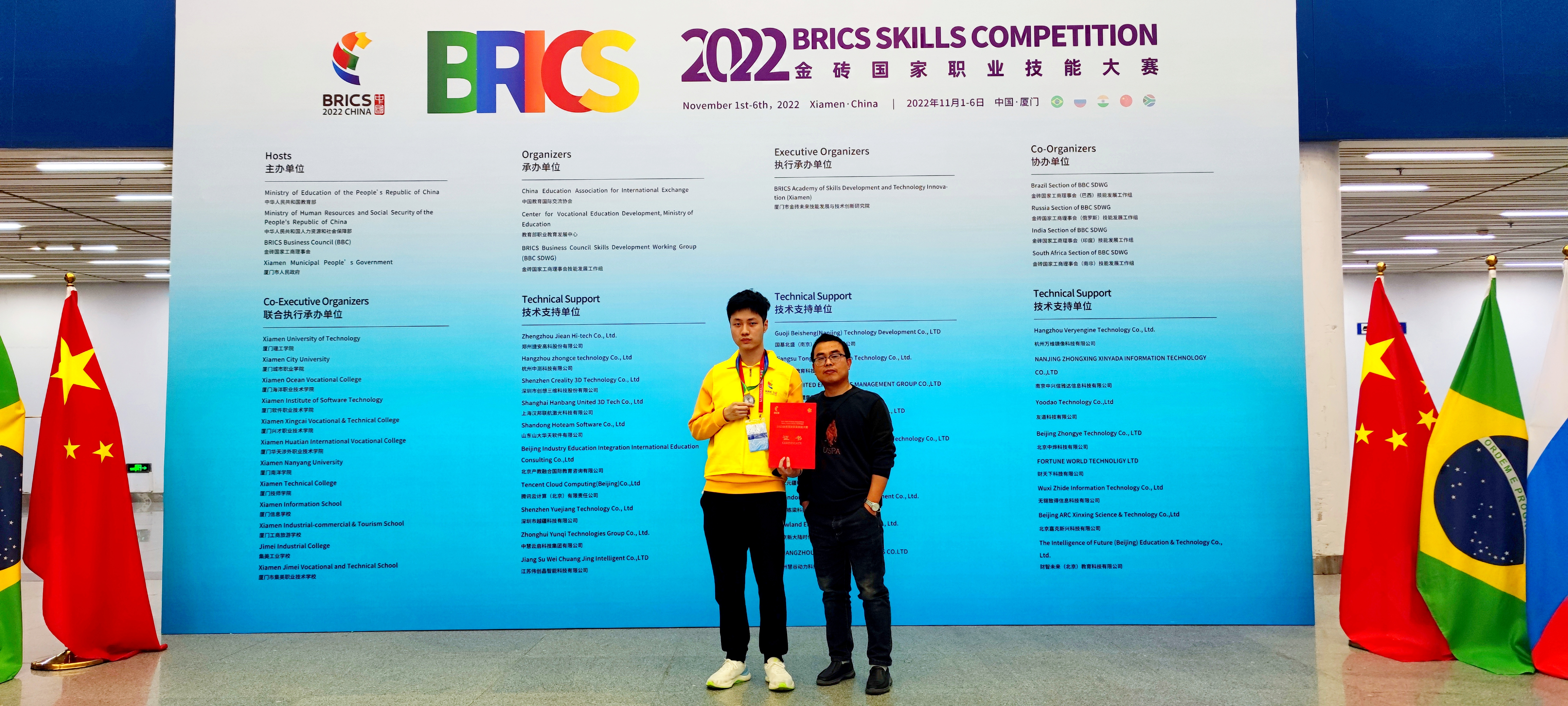 11月6日,2022金砖国家职业技能大赛决赛在厦门圆满结束,经过2天的激励角逐,我校信息工程学院学子在人工智能计算机视觉和工业互联网赛项中斩获佳绩。其中,胡贵恒老师指导的20人工智能技术服务班张千一同学在人工智能计算机视觉赛项中国际排名获银牌,国内排名获一等奖;徐祥辉、茹兴旺老师指导的20计算机网络7班的张家固、李业基两位同学在工业互联网赛项中获二等奖。