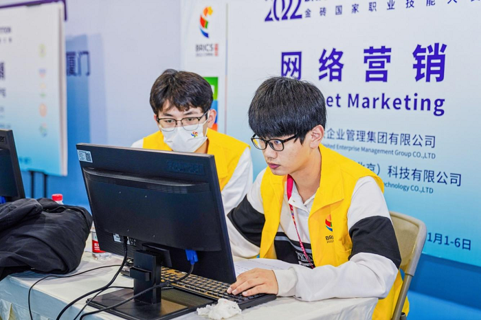 11月6日,由教育部牵头主办,人力资源和社会保障部、金砖国家工商理事会、厦门市人民政府共同主办的“2022金砖国家职业技能大赛网络营销赛项”在厦门圆满结束。本次比赛的规模宏大,经过层层选拔,最终共有来自金砖五个国家的百余名职业院校师生进入决赛。