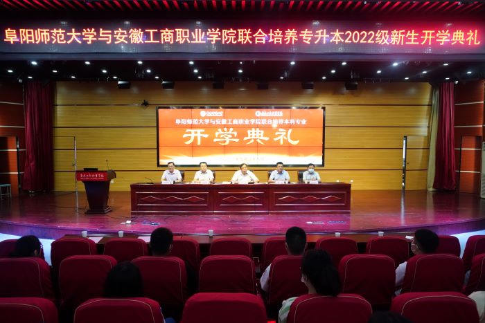 9月28日上午,阜阳师范大学与安徽工商职业学院联合培养专升本2022级新生开学典礼在我校双凤校区隆重举行。院领导李雪、陈行、黄继胜、胡捍东、陈章奇出席典礼,典礼由院党委副书记陈行主持。相关处室、二级学院领导和老师参加了开学典礼。