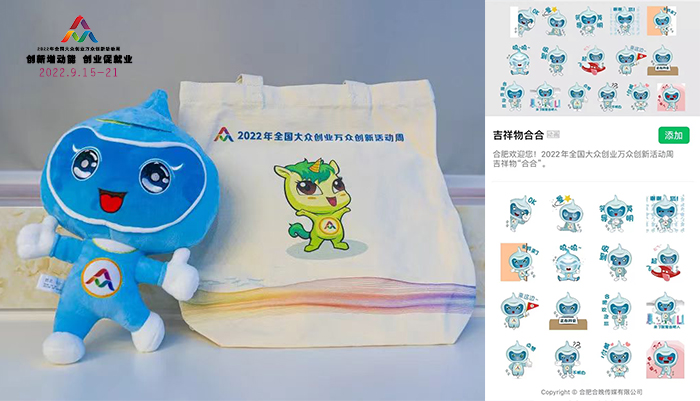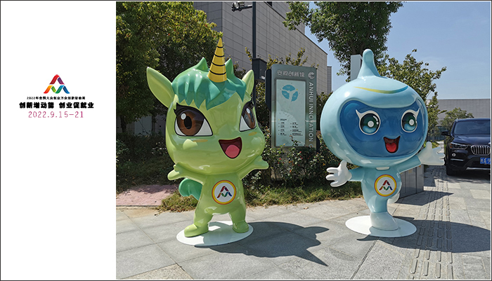 9月15日,2022年全国大众创业万众创新活动周正式拉开大幕,主会场设在合肥市。中共中央政治局常委、国务院总理李克强在人民大会堂出席全国双创活动周,发表重要讲话,宣布活动周启动。活动周采用线上线下相结合的方式。全国25个省、自治区、直辖市及计划单列市政府嘉宾以及创新创业代表等齐聚合肥,共同参与这场双创饕餮盛宴。由安徽工商职业学院艺术设计学院团队设计的本届“全国双创周”吉祥物“合合”在开幕式上精彩亮相,受到来自全国各地嘉宾和市民的热捧。“合合”与“壮壮”吉祥物雕塑也同期在我校双凤校区展出。