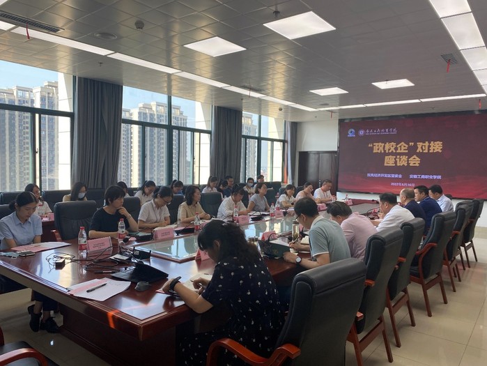 为深入贯彻党中央、国务院“稳就业”“保就业”决策部署,落实就业工作“一把手”工程,探索政校企合作长效机制,解决企业人才之需,实现“政校企”共建共享共赢,6月16日,双凤经济开发区管委会和安徽工商职业学院联合举办“政校企”对接座谈会。双凤经济开发区管委会工委委员、组宣委员、统战委员张宇,双凤经济开发区人社局局长陈志云和双凤经济开发区内17家企业参加座谈,校领导齐建平、李雪、陈行、黄继胜、胡捍东、陈章奇参加会议,会议由党委委员、副院长胡捍东主持。