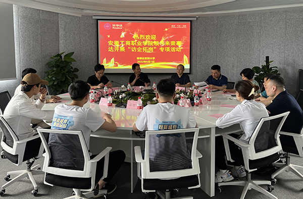 梁仁春对齐建平一行的到访表示热烈欢迎,对学院多年来为企业输送了大批优秀人才表示衷心感谢。他指出,安徽工商职业学院办学历史悠久,人才培养质量高,用人单位评价优。在与经济贸易学院共建双创产业学院合作中,双方深度交流、共探路径,已取得很多积极成果,下一步将继续对接人才共育模式,加强人才就业创业精准服务,力争打造成为省级示范双创基地。