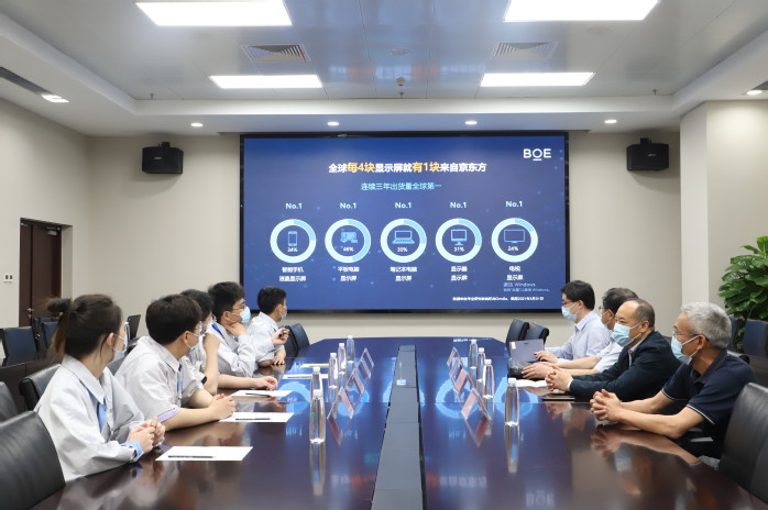 上午,齐建平一行来到合肥京东方光电科技有限公司,参观了京东方DSH展厅,了解京东方企业现有规模、发展规划、产品布局及人才需求情况。京东方HRBP部长朱锡坤对齐建平一行表示热烈欢迎,他感谢学校在人才输送、校企合作等方面给予京东方的大力支持,期待以本次活动为契机,继续深化校企合作。齐建平感谢京东方的热情接待,介绍了学院的发展历史及师生规模、专业布局、人才培养及就业形势等,希望双方在过去良好合作的基础上不断探寻合作渠道实现共赢,把握战略发展机遇,充分发挥各自优势,进一步深化校企合作和人才培养输送,共同开创共赢新局面。我校2017届楼宇智能化工程技术专业毕业生、现京东方动力部助理工程师马金辉作为优秀毕业生代表发言。座谈结束后,齐建平一行参观了京东方全球首条10.5代液晶面板生产线,实地观摩了TFT-LCD65英寸及以上超大尺寸8K超高清液晶显示屏生产过程。