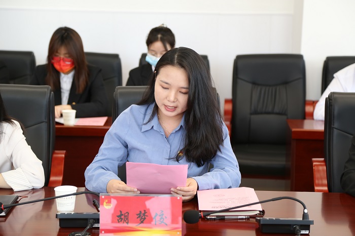 教师团干代表、信息工程学院团总支书记胡梦佼在发言中谈到校园疫情防控期间学院的共青团工作,从建立防疫工作联动机制,确保工作落实和信息统计有效、畅通;充分发挥网络新媒体矩阵,全面宣传疫情防控知识,进行学生舆情引导;心理援助,消除恐慌,线上线下对学生开展心理咨询;共同战“疫”,同“屏”奋斗,丰富学生校园文化生活等方面进行了汇报,表示勇做时代先锋,答好青春答卷,继续将各项团学工作准确落到实处。