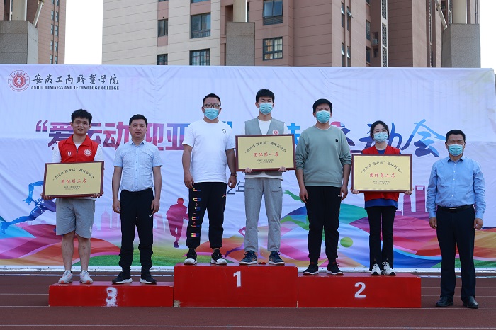 本次趣味运动会设置了铁环接力赛、投沙包、一分钟踢毽子、企鹅漫步多项趣味项目,所有项目均以师生齐上阵的团体形式参赛。在既紧张又有趣的比赛氛围中,参赛师生们配合默契、反应敏捷、动作迅速,充分展现出各参赛队伍团结向上、朝气蓬勃的精神风貌。现场观赛的同学们也激情澎湃,大家整齐划一的为各队选手加油鼓劲,掌声,笑声,喝彩声此起彼伏。最终,会计学院代表队、校级学生组织1队获得团体一等奖,校级学生组织2队、信息工程学院代表队、艺术设计学院代表队获得团体二等奖,经济贸易学院代表队、旅游学院代表队、应用工程学院代表队、管理学院代表队获得团体三等奖。校党委副书记陈行为团体前三名颁发了奖牌。