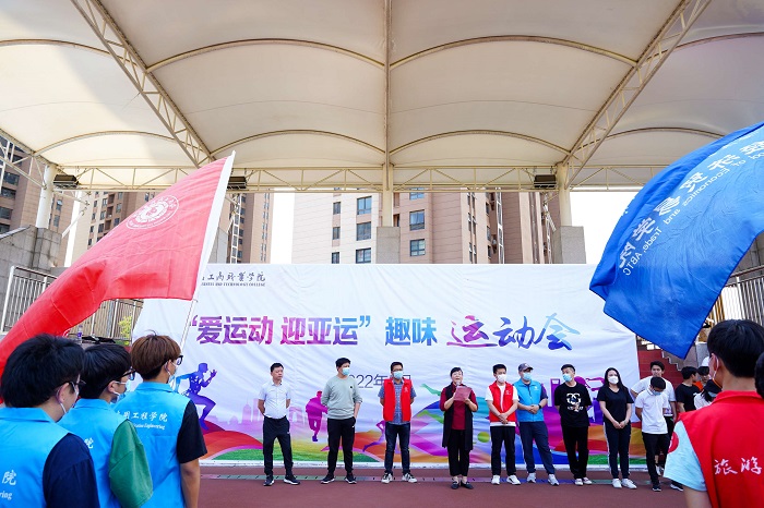 为鼓励广大师生积极参与体育锻炼,弘扬中华体育精神,弘扬体育道德风尚,营造全民喜迎亚运会的浓厚氛围。5月4日下午,我校在田径场举办了“爱运动 迎亚运”趣味运动会,各二级学院以及校级学生组织共组成了9支参赛队伍,共有200余名师生积极踊跃参赛。