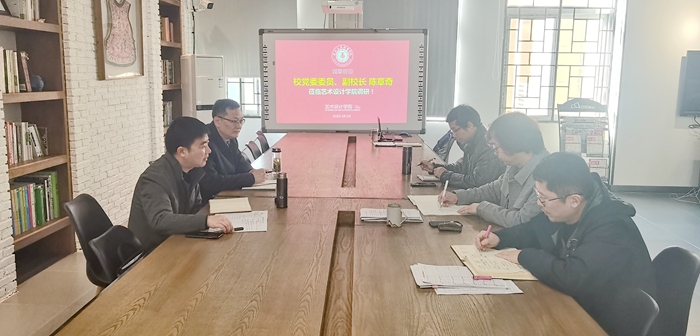 3月3日上午,校党委委员、副校长陈章奇,教务处副处长姚庆锋深入艺术设计学院调研指导,艺术设计学院院长孔成,副书记、副院长哈春浪等陪同调研。