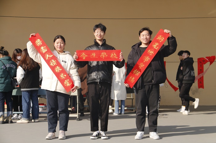 喜庆的红纸为底,黑墨为字,一幅幅平安和谐、吉祥如意的春联在这寒冷的冬日彰显出喜气洋洋的气息。活动现场还推出了猜字谜、朋友圈集赞等方式领取春联和福字、书签,广大师生纷纷前来排队,整个活动秩序井然,现场气氛热烈。师生们纷纷表示,写的春联最有意义,这是送到心坎儿里的祝福。据统计,活动当天共送出春联200余幅。在喜庆的氛围中,让广大师生感受到了冬日里的温暖,也给即将到来的新春增添了浓浓的年味。