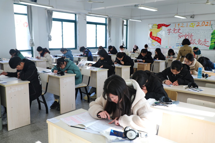 考试当天,学校严格落实返校考生查验48小时内核酸阴性证明、安康码绿码、14天内无中高风险行程轨迹,测量体温等环节,在教室配备防疫消毒用品,设置隔离考场并配备工作人员预防突发情况。