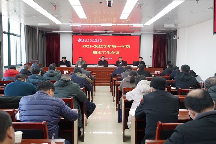 12月22日下午,学校在综合楼第二会议室召开期末工作会议。校领导孙永、李雪、汪贤武、张智清、黄继胜等出席会议,全体中层干部参加会议,会议由学校党委副书记、校长李雪主持。