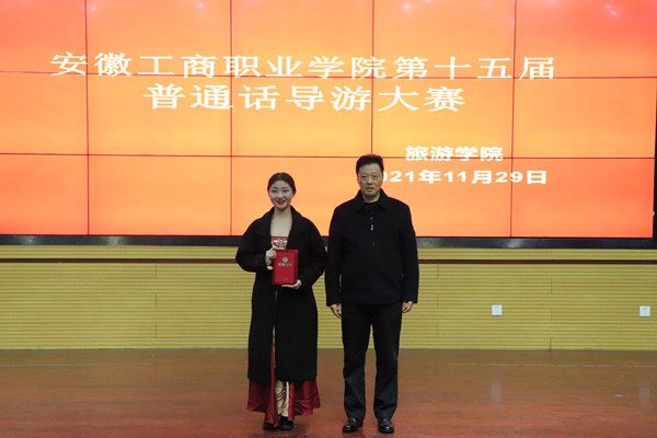11月29日晚,藏晖楼学术报告厅内灯火辉煌,安徽工商职业学院第十五届普通话导游大赛决赛在这里隆重举行。旅游学院党总支书记边昊,院长傅绪明、副院长魏芬以及部分专业教师担任评委。