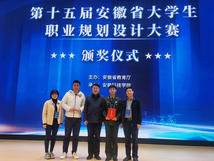 11月6日,由安徽省教育厅主办,安徽省大中专毕业生就业指导中心、安徽省教育厅高校学生处、省内有关院校毕业生就业部门承办的第十五届安徽省大学生职业规划设计大赛决赛在安徽科技学院举行。我校由学生处牵头组织,管理学院党总支书记曹大友、辅导员毕筱菁担任指导老师,通过校赛选拔20级连锁经营管理1班学生马思贤同学参加此次决赛。