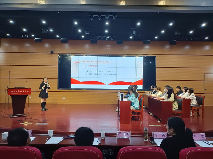 本次比赛以“学党史 感党恩 知国情 担使命”为主题。比赛分“方案设计”和“现场展示”环节。选手们从方案设计到现场展示环节都深下功夫、琢磨推敲,特别是在10月14号的现场展示环节,各位参赛选手声情并茂,主题突出,理论联系实际,通过视频、图片、案例、学生互动等教育手段使班会达到理想的效果。经过激烈比拼,信息工程学院傅贤举获得一等奖,旅游学院张亚运、会计学院周茜获得二等奖,管理学院吴姗珊、艺术设计学院胡佩佩、会计学院陈晓蔓获得三等奖,管理学院操炜、经济贸易学院朱清涟获得优秀奖。