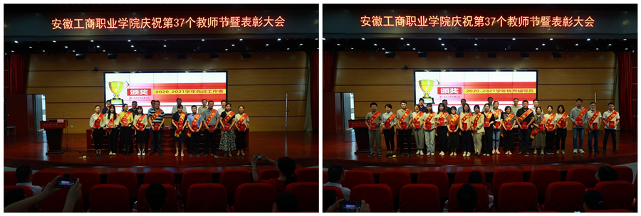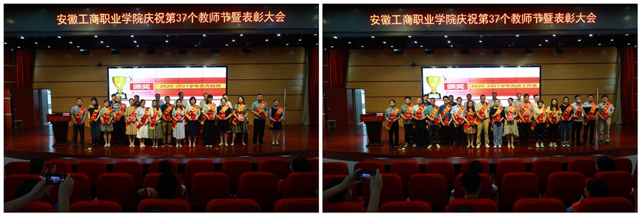 下午2时,在雄壮的国歌声中,大会正式开始。党委委员、副校长张智清宣读了有关表彰决定。大会对10名学校师德模范人选及1名安徽省教科文卫体系统 “师德先进个人”、10个先进集体、40名优秀教师、53名先进工作者、40名优秀辅导员进行了表彰,出席会议的校领导共同为获奖教师颁奖并合影留念,对4名满30年教龄教师颁发了荣誉证书。