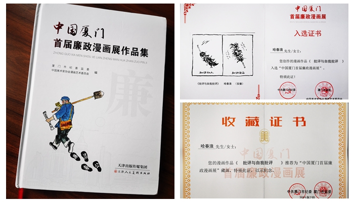 为庆祝中国共产党建党100周年,以喜闻乐见的形式大力营造风清气正的良好社会氛围,厦门市纪委监委联合中国美术家协会漫画艺术委员会举办了“中国厦门首届廉政漫画展”活动,艺术设计学院党总支副书记、副院长哈春浪的漫画作品《批评与自我批评》入选本次漫画展并被收藏。