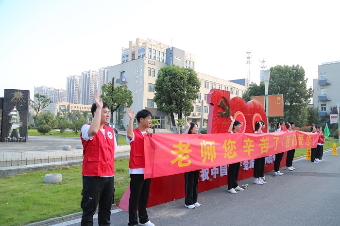 9月10日上午7:00,校学生会的同学们早早地在学校大门口迎接老师,手持“老师您辛苦了!我们爱您!”横幅,表达对老师诚挚的节日问候。同时校青年志愿者协会的同学们也在校门口布置好场地,将一件件精美的手工纪念品送到老师手中,深情表白对老师浓浓的爱意。中午,校广播站的同学们也在教师节当天准备了“致敬教师节 老师我想对您说”特别广播节目,全校学生纷纷参与,汇聚最真诚的心声,用朴实的语言传递对老师的深深爱意。