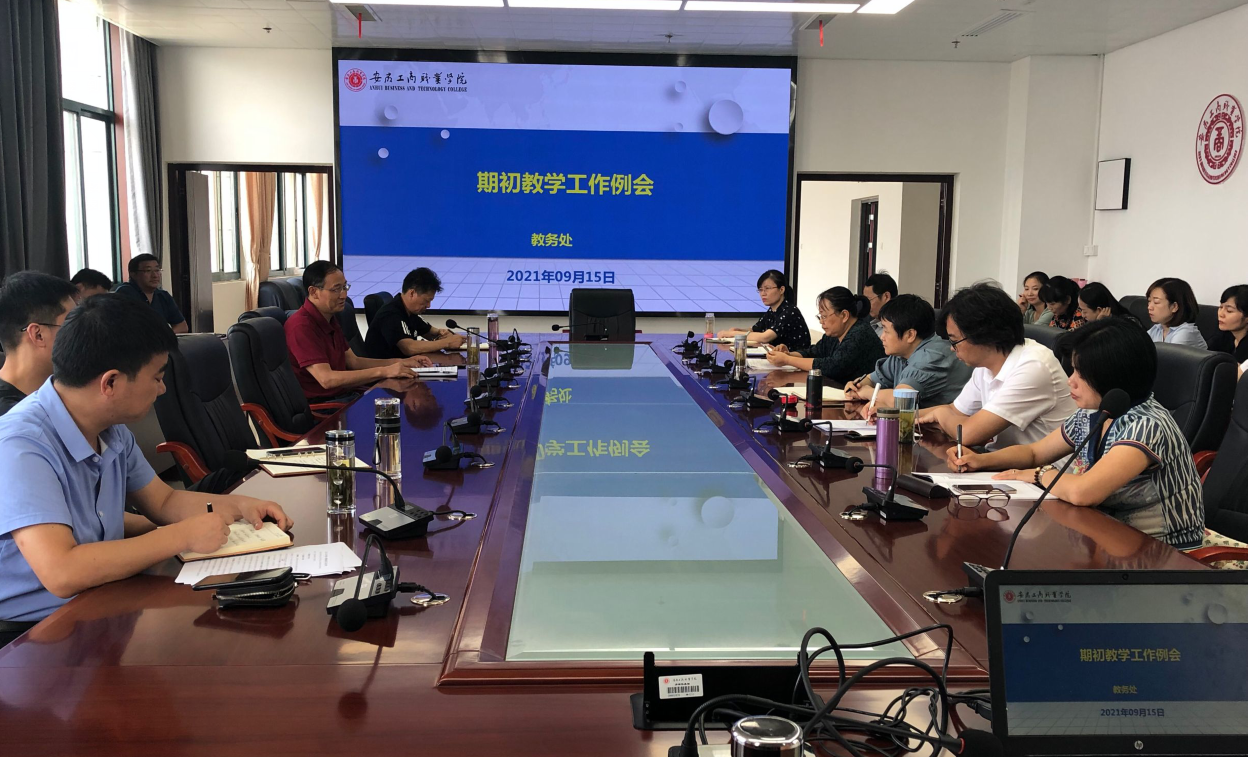 9月15日下午,学校在双凤校区综合楼三号会议室召开了期初教学工作例会。校党委委员、副校长汪贤武出席会议,各二级学院(部)院长(主任)、副院长、教务科长,教务处、质量管理与监控办公室、学生处、信息化建设发展处负责人参会,会议由汪贤武主持。