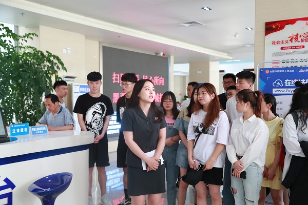 法院干警首先带领同学们参观了庐阳区人民法院诉讼服务中心、法治浮雕墙、家事法庭、心灵驿站以及立案执行大厅等工作场所。同学们还亲自体验了现代化智能诉讼服务,对正在建设中的智慧法院很感兴趣。
