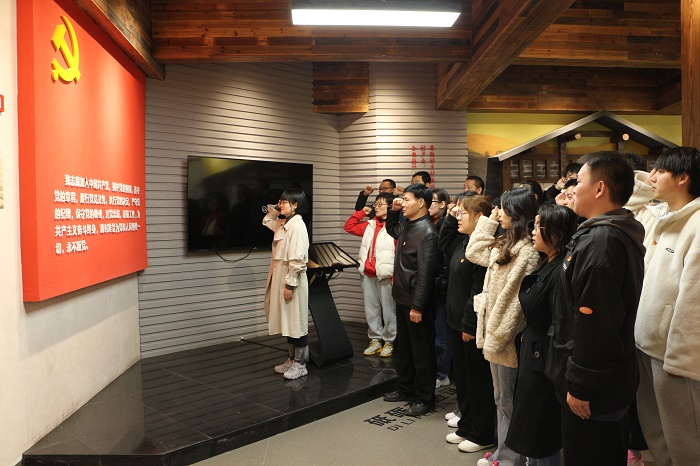 随后党员们参观学习了马郢党建馆。党建馆以“凝心聚力强组织,砥砺奋进筑未来”为主题,总体设置中共党史、支部带头、入党宣誓等三个功能展区。在馆内的入党宣誓功能区,党员们站在鲜红的党旗面前,重温了入党誓词,以铮铮誓言再言入党初心。此次宣誓活动进一步激发了师生党员奉献与担当的热情与觉悟,同时增强了党性观念与党性修养。
