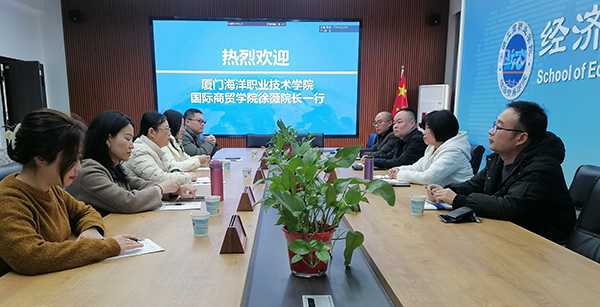 3月1日下午,厦门海洋职业技术学院国际商贸学院院长徐薇一行5人来我校经济贸易学院考察交流。经济贸易学院院长张颖、学院办公室主任王韦、教务科科长张键等参加了交流活动。