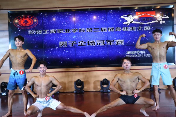 活力四射的健身舞蹈-阿里阿里点燃了现场观众的热情,拉开了本次比赛的帷幕。首先进行男子健体A组、B组的预赛,运动员依次上场,进行4个转向的展示,其中肌肉呈条状形态,肌肉量适度、紧致有型、饱满、轮廓清晰美观且自然、呈现运动的男性体格,肩腰比接近2比1为佳。接着进行的健身瑜伽表演,表演者充分展现出了瑜伽的力与刚、柔与美。紧接着进行的是女子形体的决赛,运动员依次进行4个转向的展示,女子形体重点评判良好的身体比例,要求肌肉适度发达、轮廓清晰,肌肉紧致、形态美观的女性体格。接着是同学们的尊巴舞-Trap表演,之后是男子古典健美的决赛,运动员依次7个规定动作的展示,重点展示充满美观的身体形态和肌肉体格,其中肌肉匀称,结构合理、肌肉质量和细节完美的运动员最佳。紧接着是男子传统健美决赛,运动员依次进行了7个规定动作,男子传统健美的评判重点是肌肉发达程度和肌肉量作为首要依据,在肌肉发达和肌肉质量接近的情况下,大骨骼小关节运动员最佳。其后进行的是男女混双表演,造型动作规范,流畅,配合默契,观赏性极高。最后进行的是全场冠军赛,每个组别的前2名选手参加,进行了7个规定动作和1分钟不定位造型的展示。