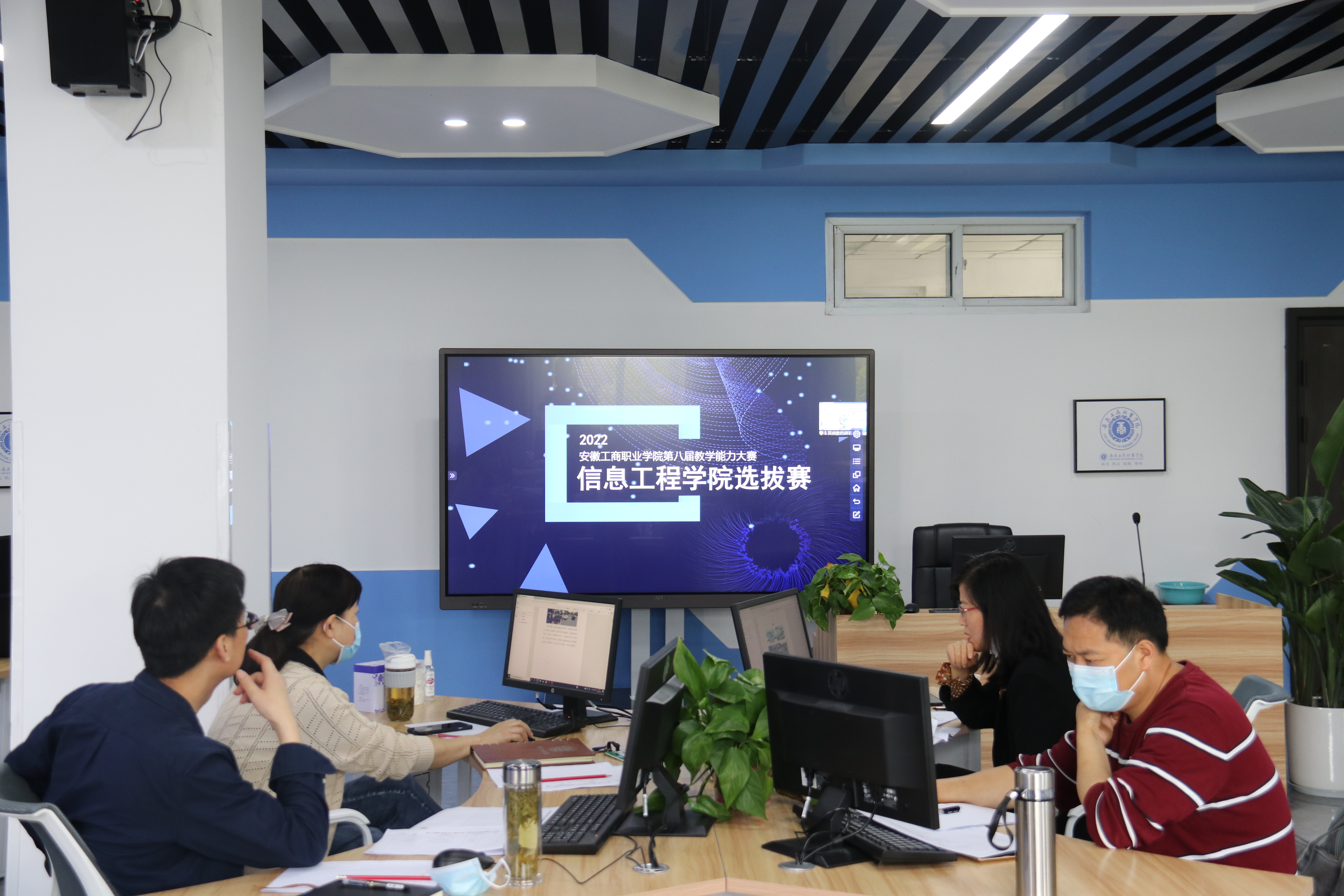 为贯彻落实全国职业教育大会精神,落实《国家职业教育改革实施方案》《职业教育提质培优行动计划(2020-2023年)》,深化“三教改革”,提高师资队伍建设水平,提升教师教学综合能力。根据学校相关部署,信息工程学院于4月28日举办第八届教学能力大赛选拔赛,来自学院5个教研室的5支教学团队共计19位专业教师参加了本次比赛。比赛邀请省内教学能力大赛专家及学院领导担任评委。由于疫情防控期,本次选拔赛采取线上线下的方式同步进行。