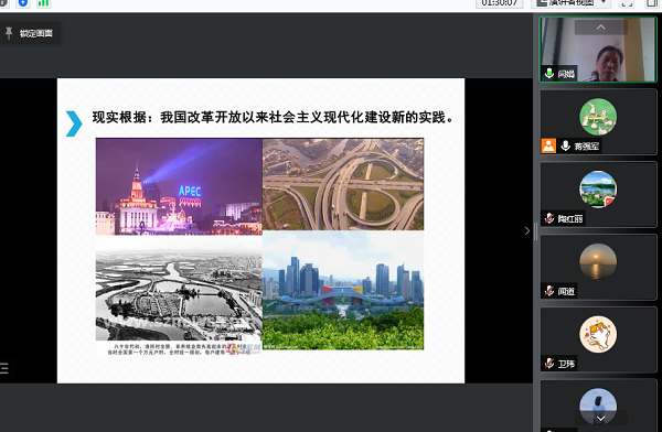 活动由“毛泽东思想和中国特色社会主义理论体系概论”教研室主任闫娟老师主讲。闫娟老师以《概论》课程第五章—邓小平理论为例,进行了教学展示。闫娟老师首先介绍了第五章邓小平理论与前四章毛泽东思想之间的逻辑关系,接着以一个提问设置了悬念,紧扣学生心理,引发学生思考。接着,闫娟老师用大量的历史资料、有趣的人物故事、饱满的精神状态,声情并茂,娓娓道来,讲述了邓小平曲折而伟大的一生,并以此为主线介绍了邓小平理论的形成和发展过程。